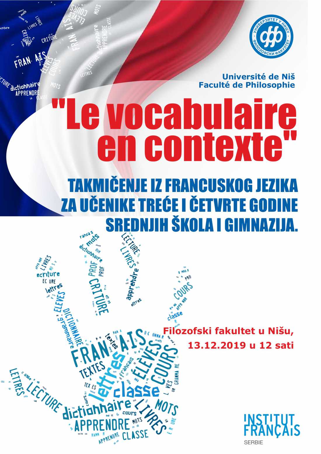 Департман за француски језик и књижевност организује такмичење за ученике трећег и четвртог разреда средњих школа и гимназија.