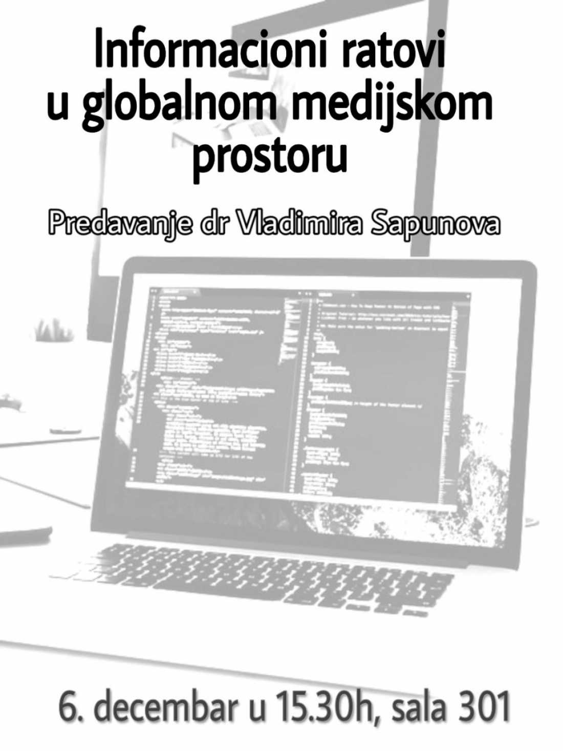 Он ће у петак, 6. децембра, у 15:30, у амфитеатру 301, одржати предавање на тему Информациони ратови у глобалном медијском простору.
