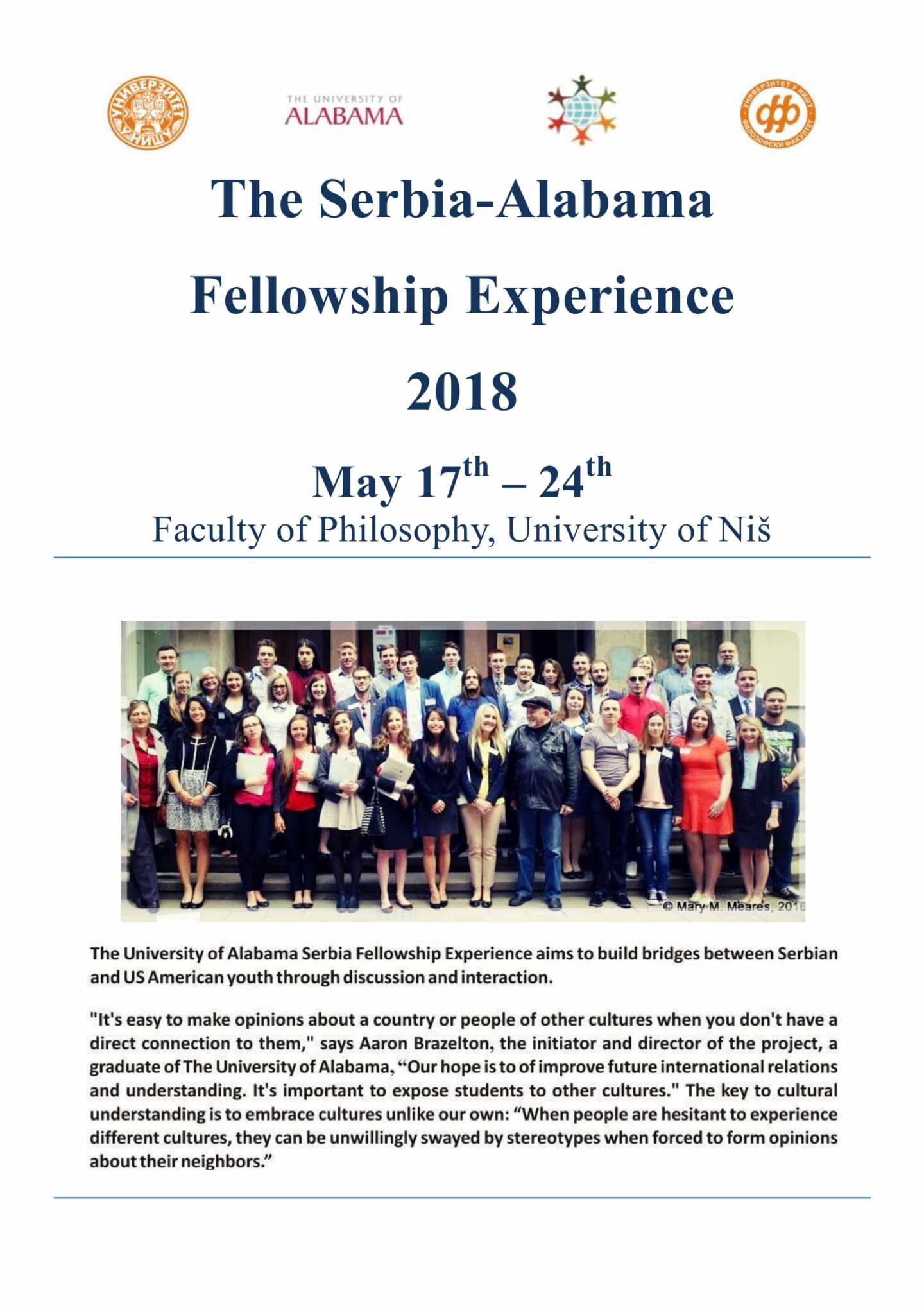 По четврти пут ове године, група студената и професора са државног Универзитета Алабама у Таскалуси (САД) боравиће на Филозофском факултету у Нишу и у нашем граду од 17. до 23. маја 2018. у оквиру пројекта The Serbia/Alabama Fellowship Experience.