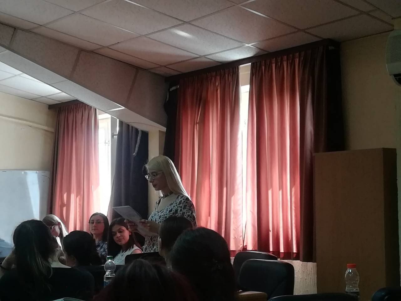 Сагледавање пеништва обогаћено је читањем стихова, што су учиниле чланице Трупе Књижевна боемија и сам песник. Након тога уследила је реч поете о погледима на уметност, стваралаштво и начинима на које код њега настаје песма. Посебној вредности часа допринео је и врло динамичан разговор између песника и студената. Избор песама, тумачење, као и питања показала су да студенти четврте године критички промишљају о књижевном стваралаштву, припремљени су да самостално препознају вредносне аспекте уметничких текстова и пруже релевантну аргументацију за своје тврдње. Сусрет са песником од великог је значаја за боље разумевање поетике актуелног стваралаштва у српској књижевности. Захваљујемо Верољубу Вукашиновићу што се одазвао позиву и био гост студената Филозофског факултета у Нишу.