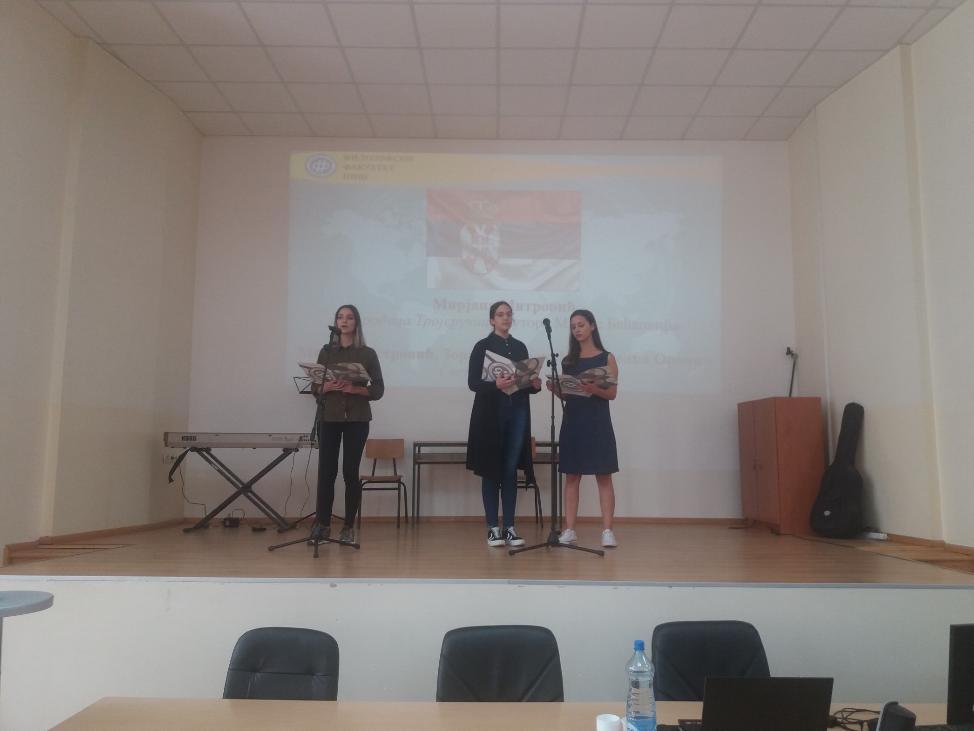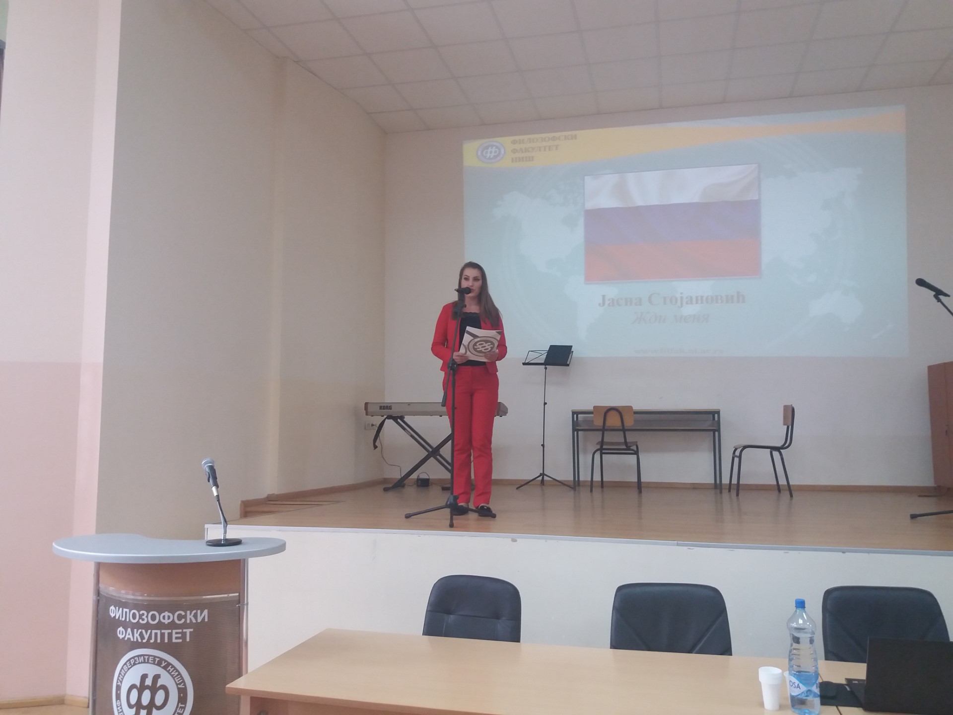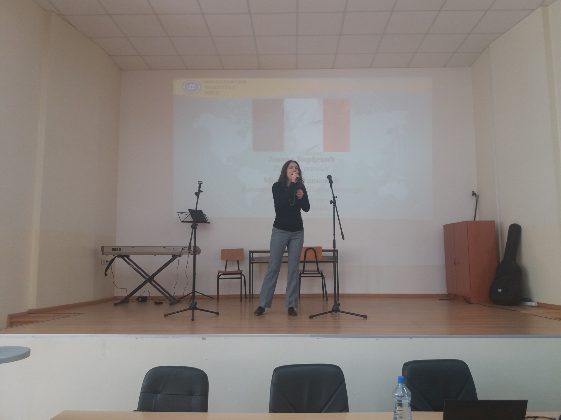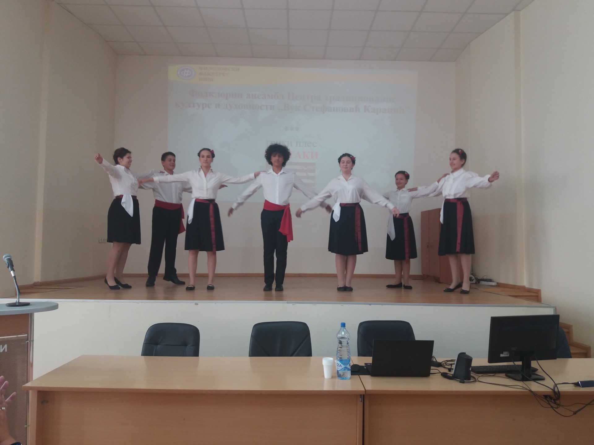 Иако је испитни рок увелико у току, велики број студената, али и ученика гимназије "Стеван Сремац", са задовољством се укључио у креативан и динамичан перформанс који је изазвао велико одушевљење публике. Након уводног обраћања деканице проф. др Наталије Јовановић која је указала на значај бројних филолошких департмана и важност изучавања језика у савременом друштву, кренуле су песме, рецитације, али и скечеви на српском, енглеском, француском, руском, грчком, бугарском, немачком. Иако се тренутно јапански не изучава на Филозофском факултету, присутни су имали прилику да чују извођење песме и на овом језику, а програм је спектакуларно завршен чувеним плесом сиртаки.