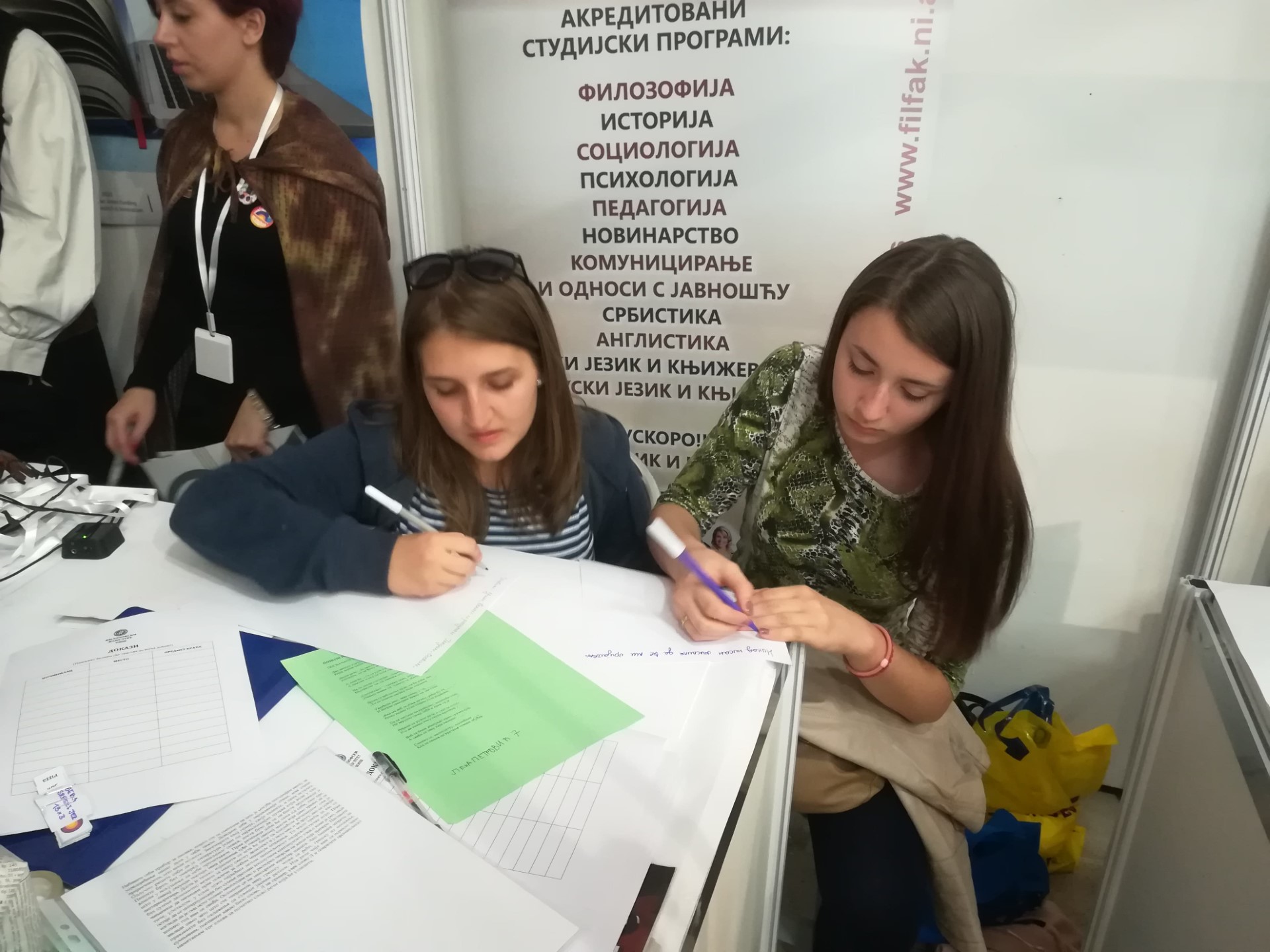 Током петочасовног боравка у павиљону Нишке тврђаве представили су на занимљив начин садржаје из области српског језика и књижевности. Тема поставке Књижевност и језик у XXI веку привукла је пажњу многобројних посетилаца свих генерација, који су били заинтересовани за илустровање метафора, писање песама, прављење дадаистичких колажа, решавање ,,књижевног злочинаˮ, упознавање са књижевницима и књижевним јунацима, али и примену мобилних телефона у учењу српског језика (апликација Speak Serbian).