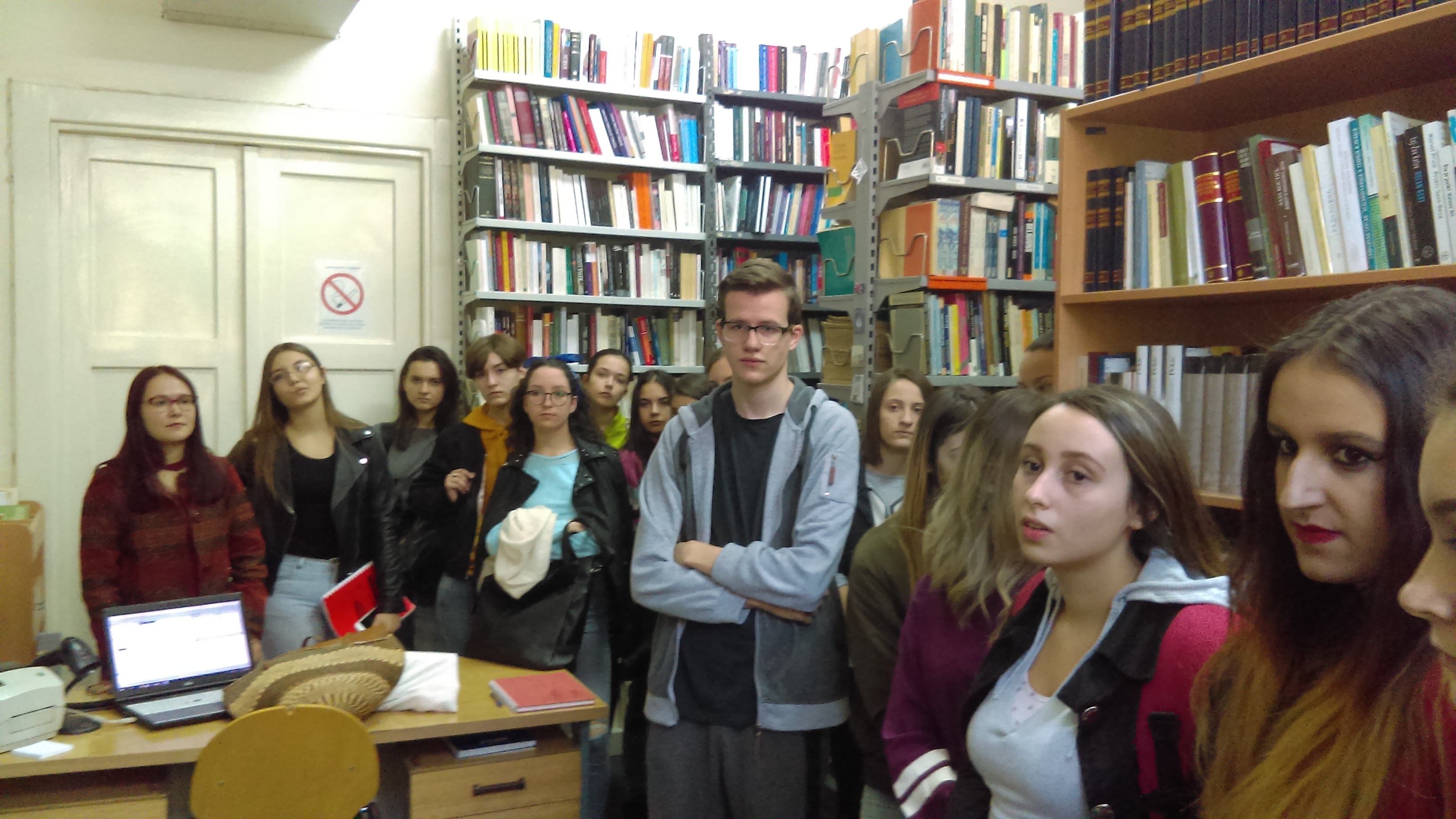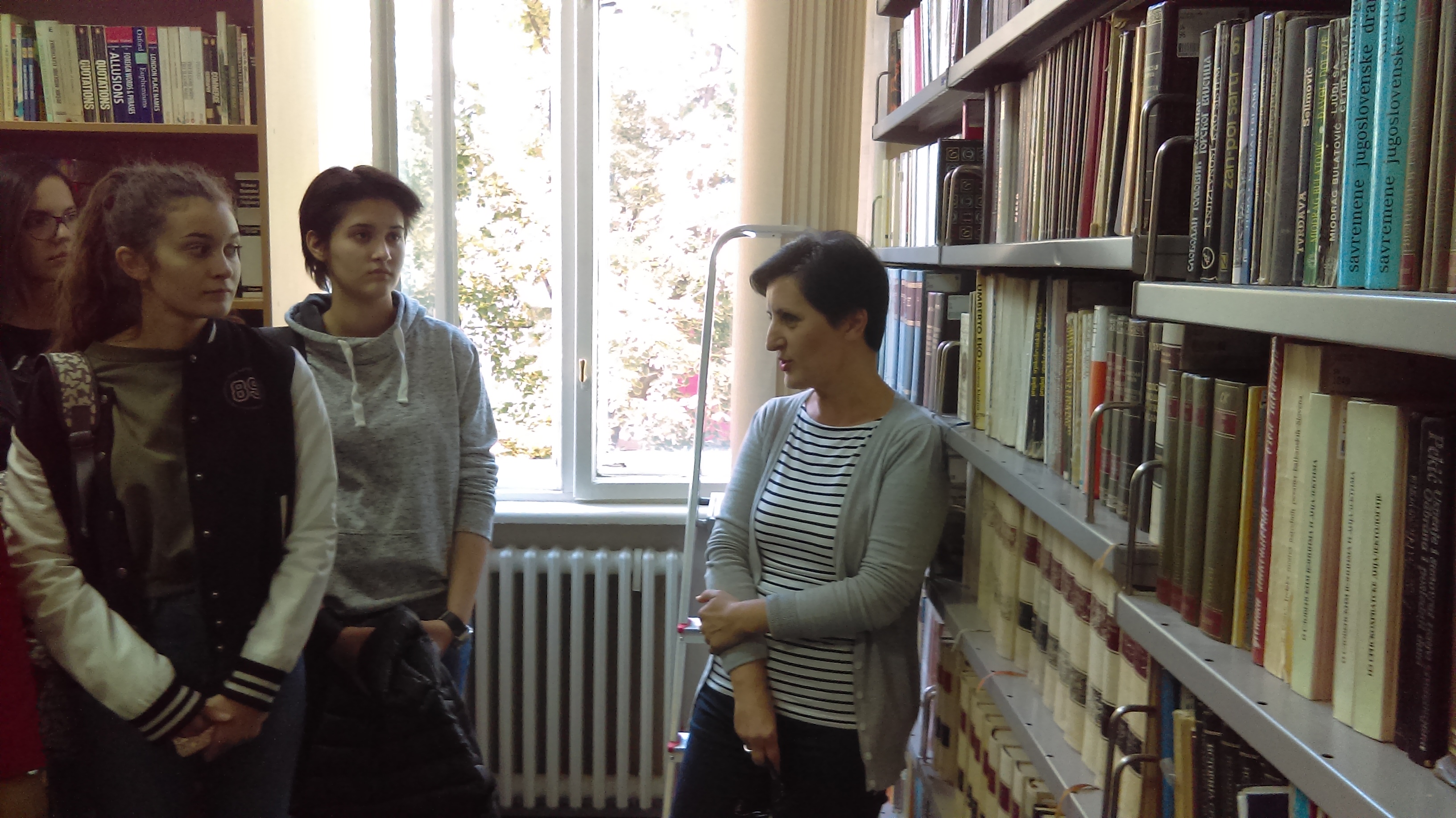 Они су, најпре, посетили библиотеку Филозофског факултета, где им је библиотекарка Маја Митошевић дала основне информације о фонду библиотеке, начину коришћења, учлањењу.