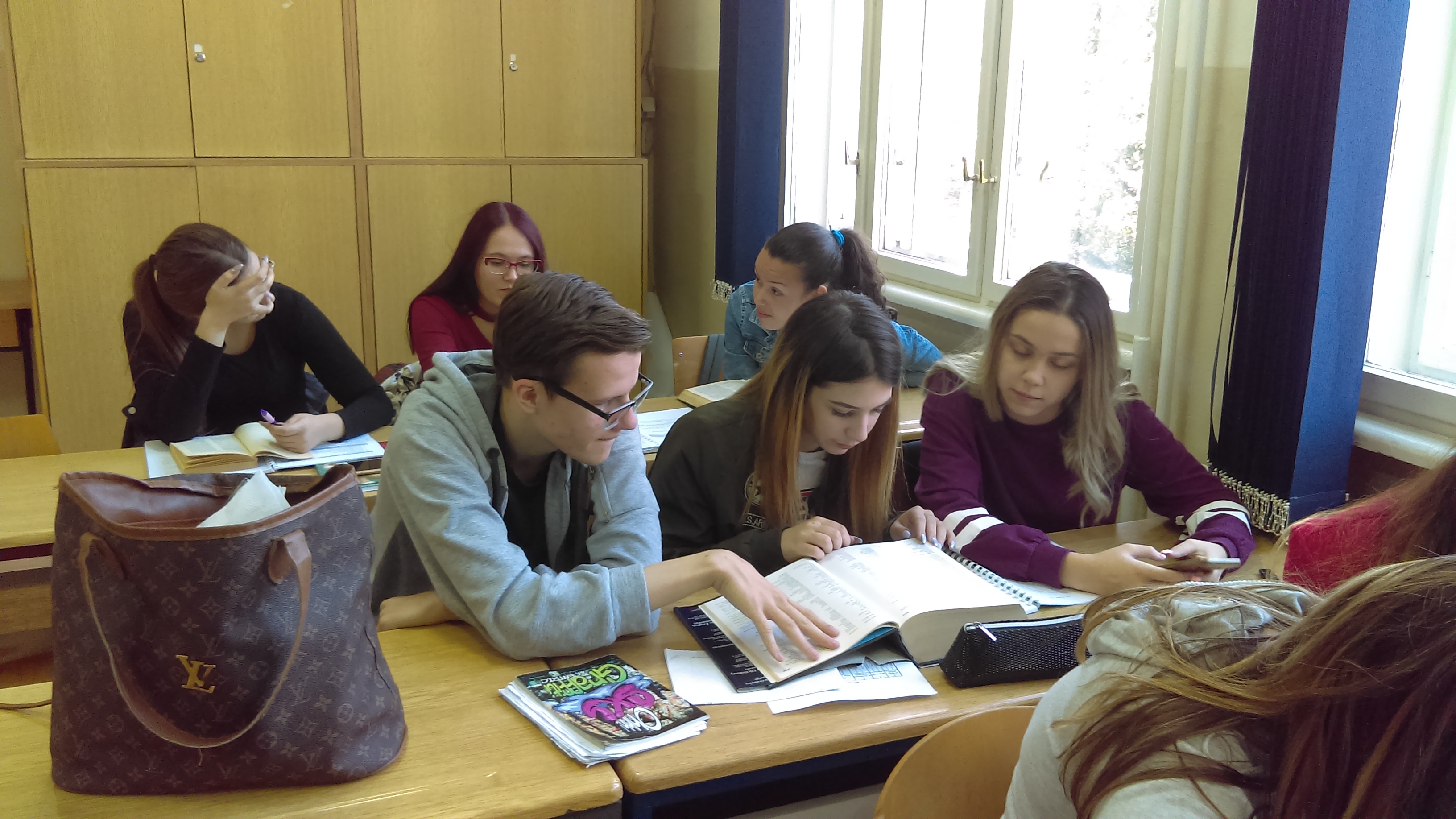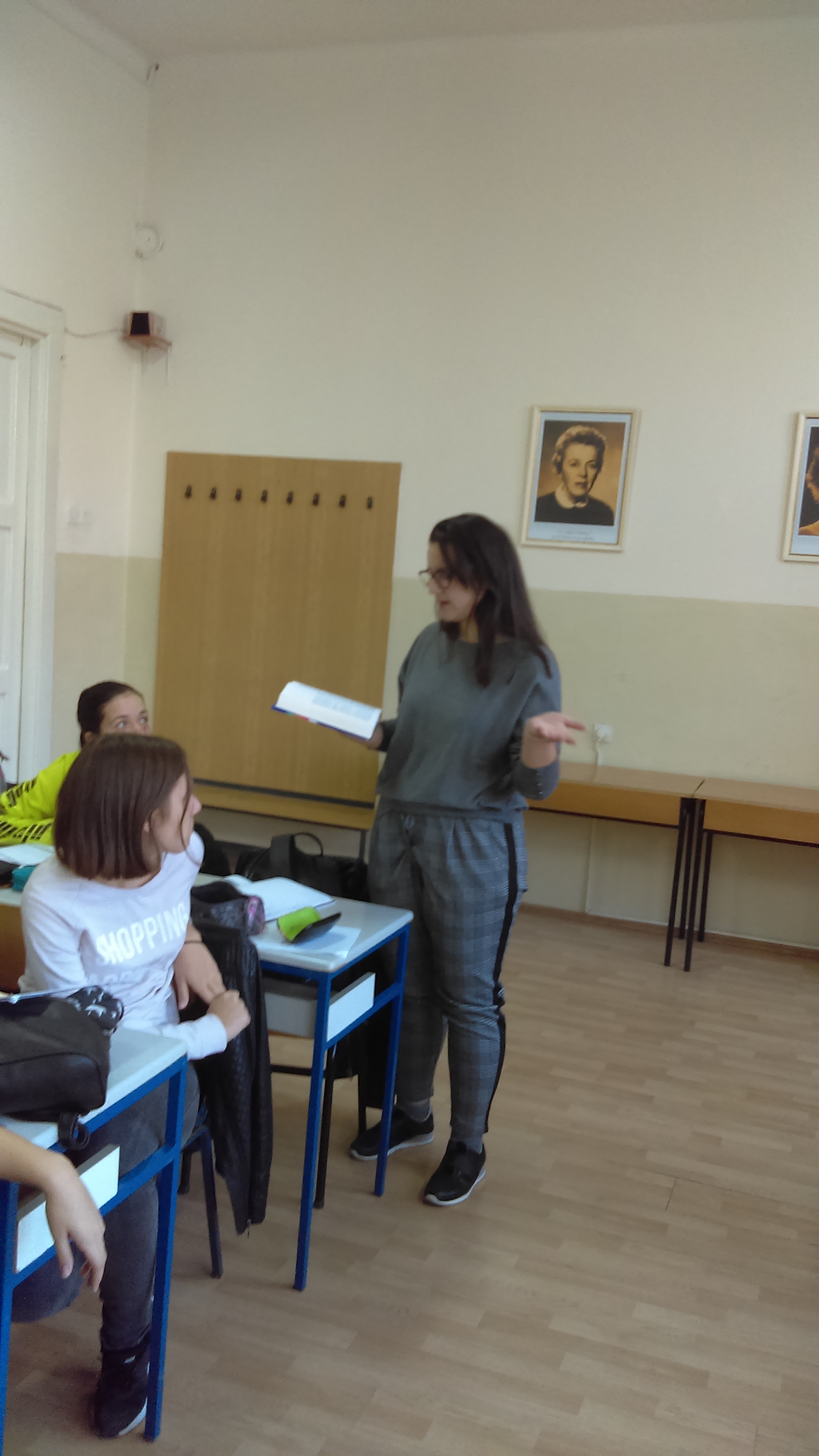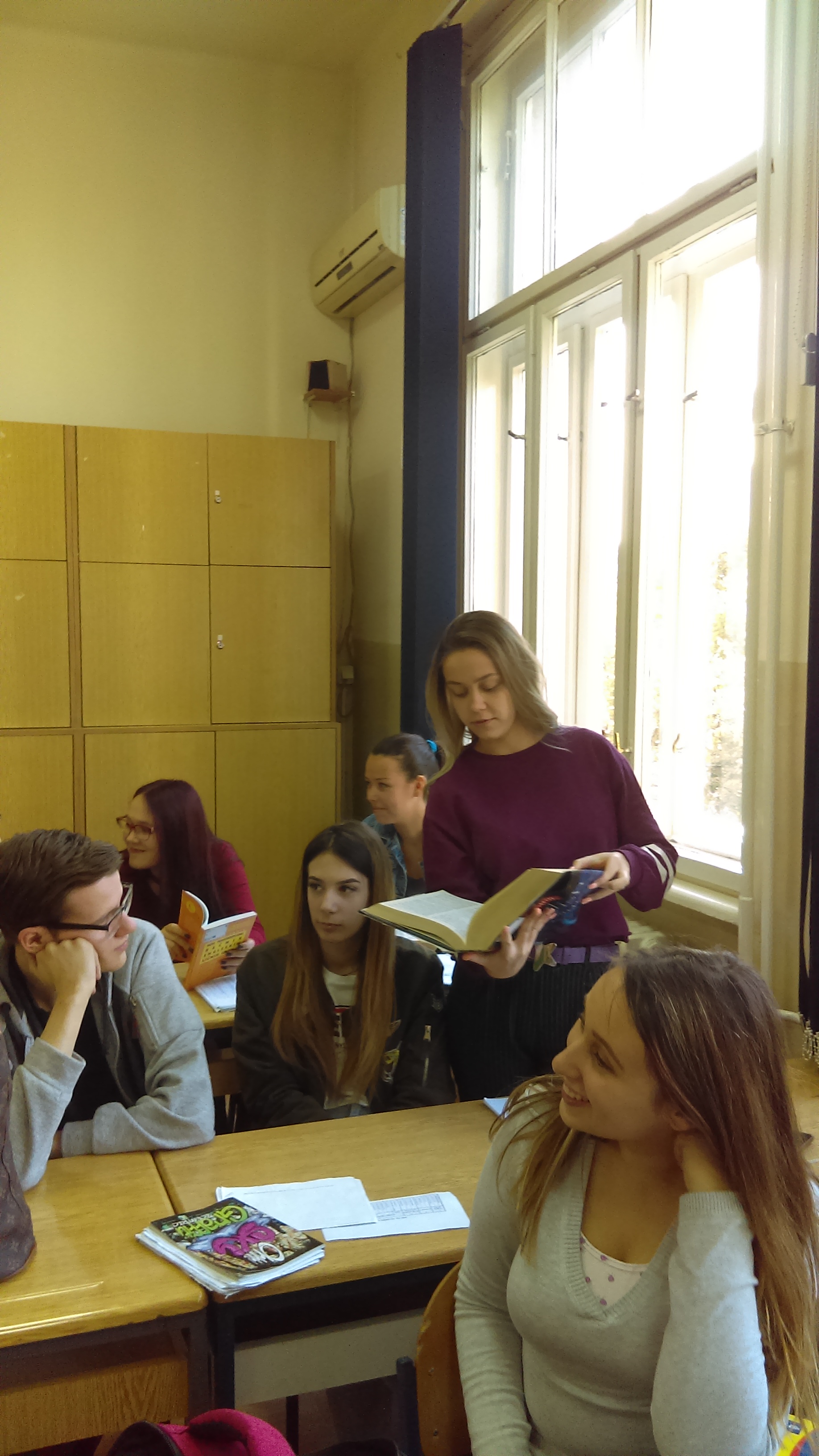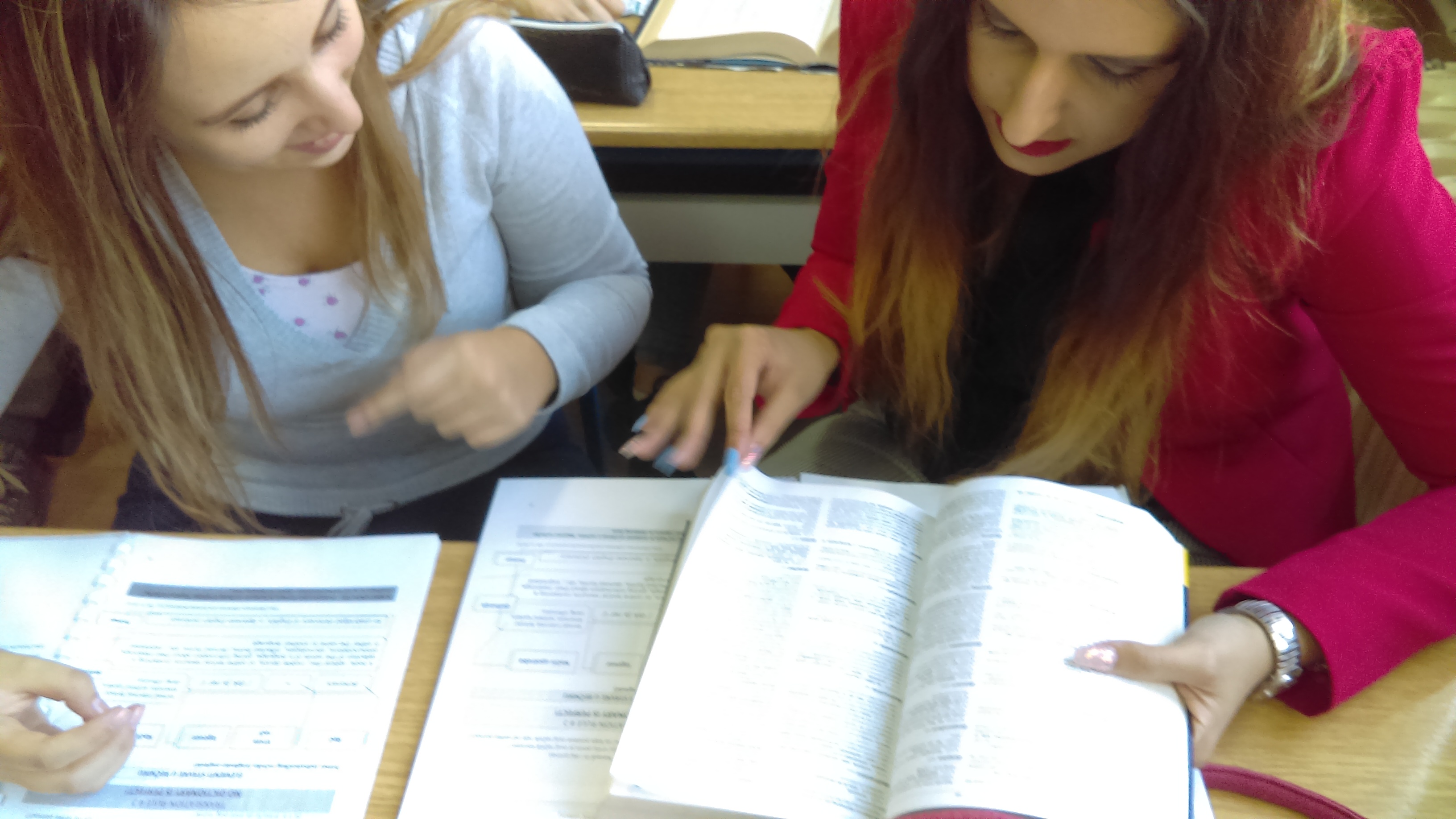 Потом су ученици имали час из предмета Основи превођења на Факултету на коме су се упознали са речницима из библиотеке и разговарали о коришћењу референтне литературе као помагала у раду преводиоца.