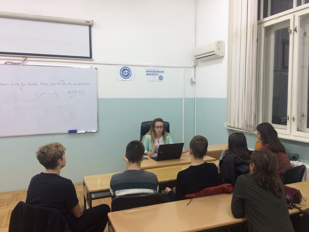 У среду, 31.10.2018. године, у оквиру Дана отворених врата на Филозофском факултету, одржана је мултимедијална интерактивна радионица која за циљ има подизање свести о потреби за уклањањем свих облика насиља над женама и девојчицама. Кроз ову интересантну активност ученици средњих школа су са асистентима нашег Департмана разговарали о веома значајним питањима, попут узрока, последица и могућих решења овог друштвеног проблема.