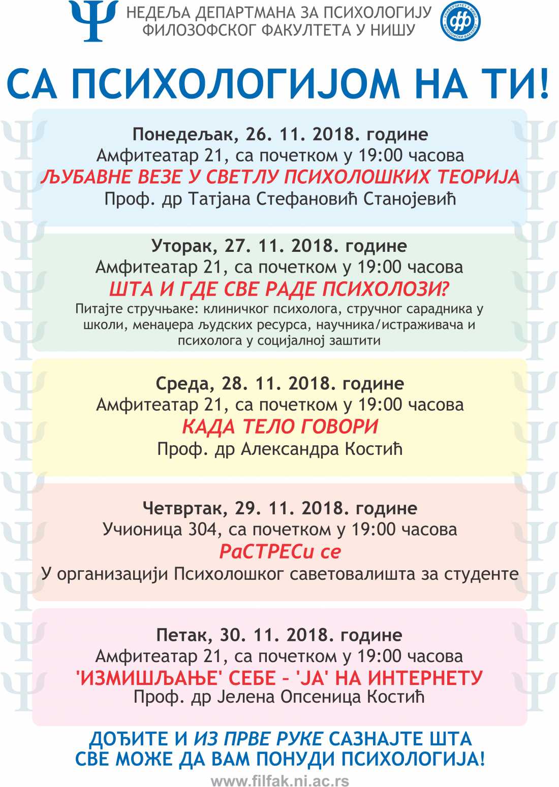 Департман за психологију Филозофског факултета у Нишу организује своју недељу под називом "Са психологијом на ти!".