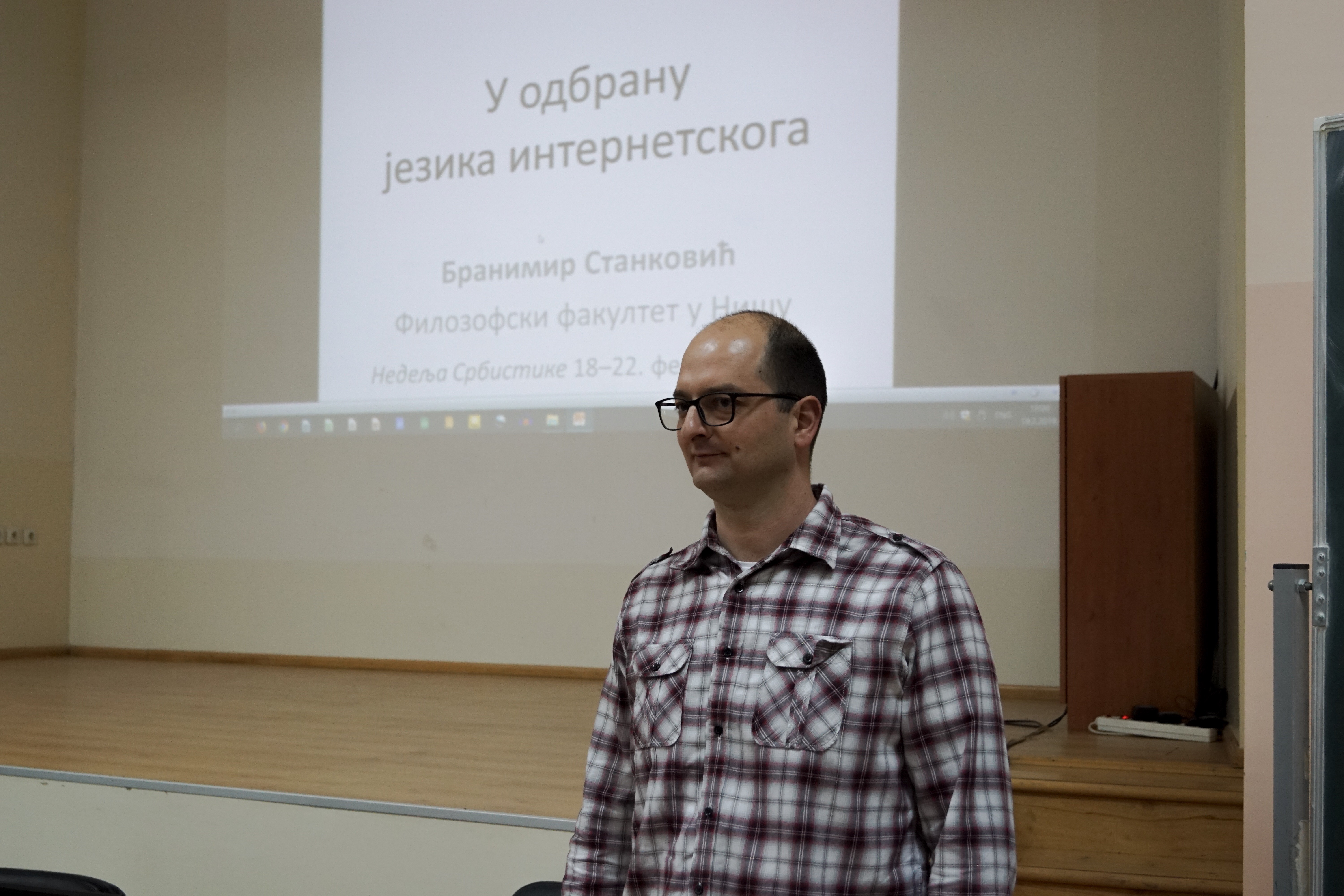 У оквиру другог дана Недеље Србистике доц. др Бранимир Станковић одржао је предавање под називом ,,У одбрану језика интернетскогаˮ.