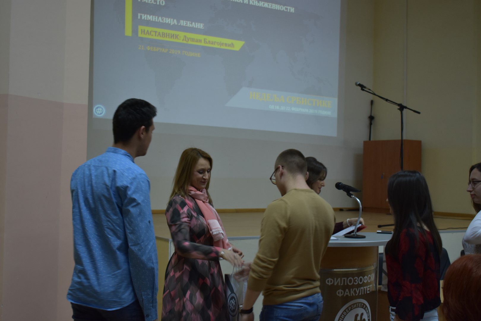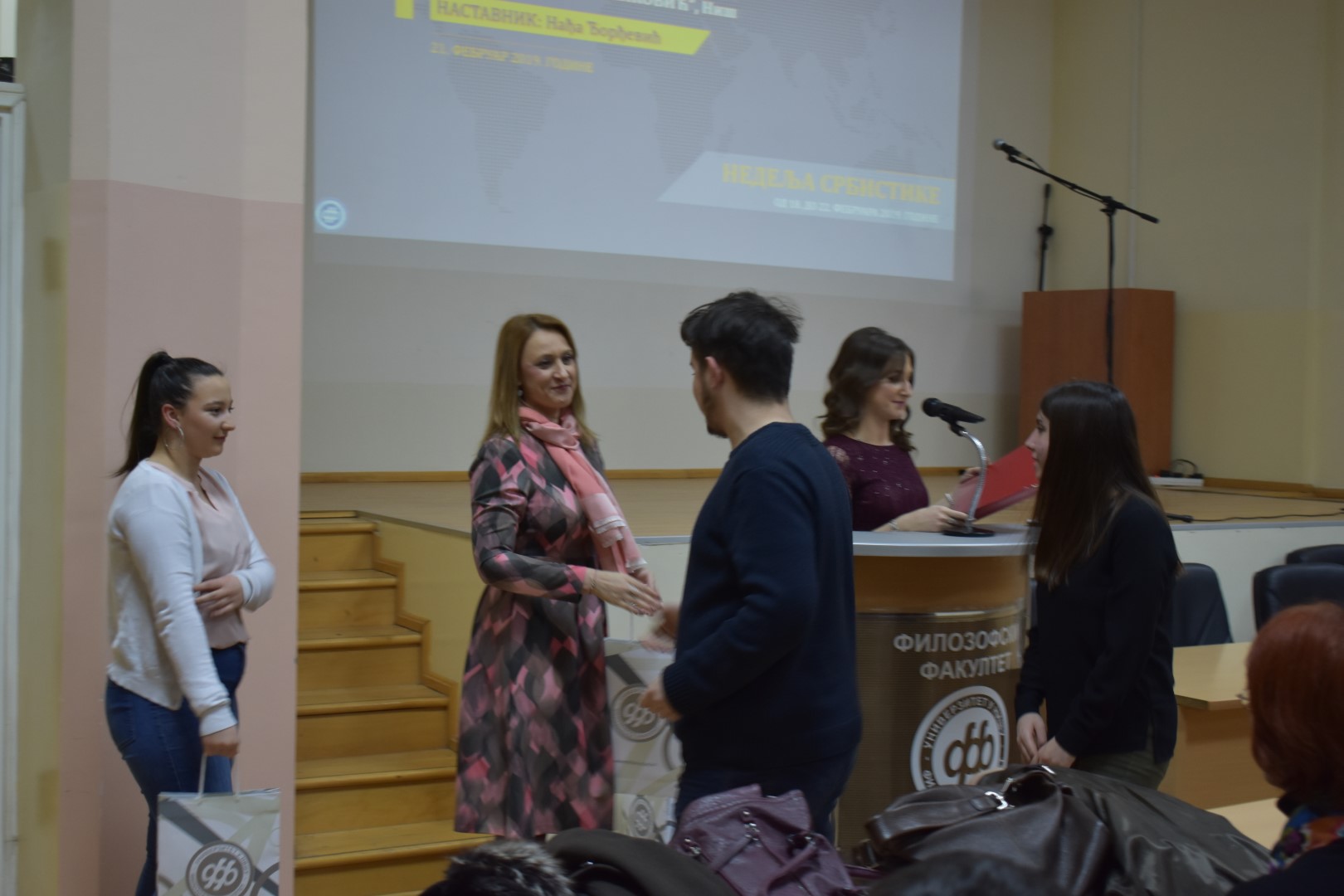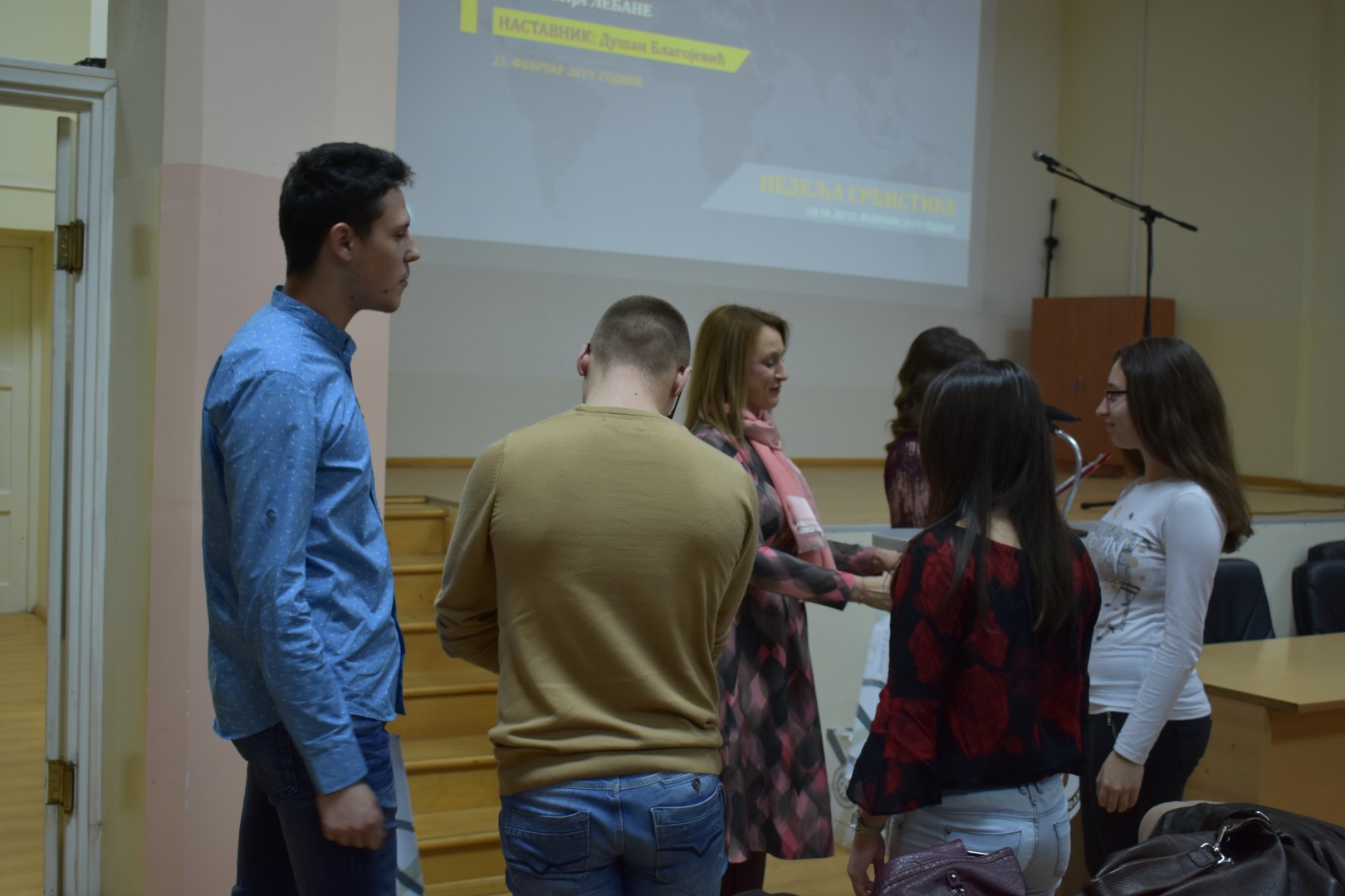 Након предавања додељене су награде победницима електронског интерактивног такмичења из српског језика и књижевности, а студенти су под менторством проф. др Савке Благојевић извели пригодан програм.