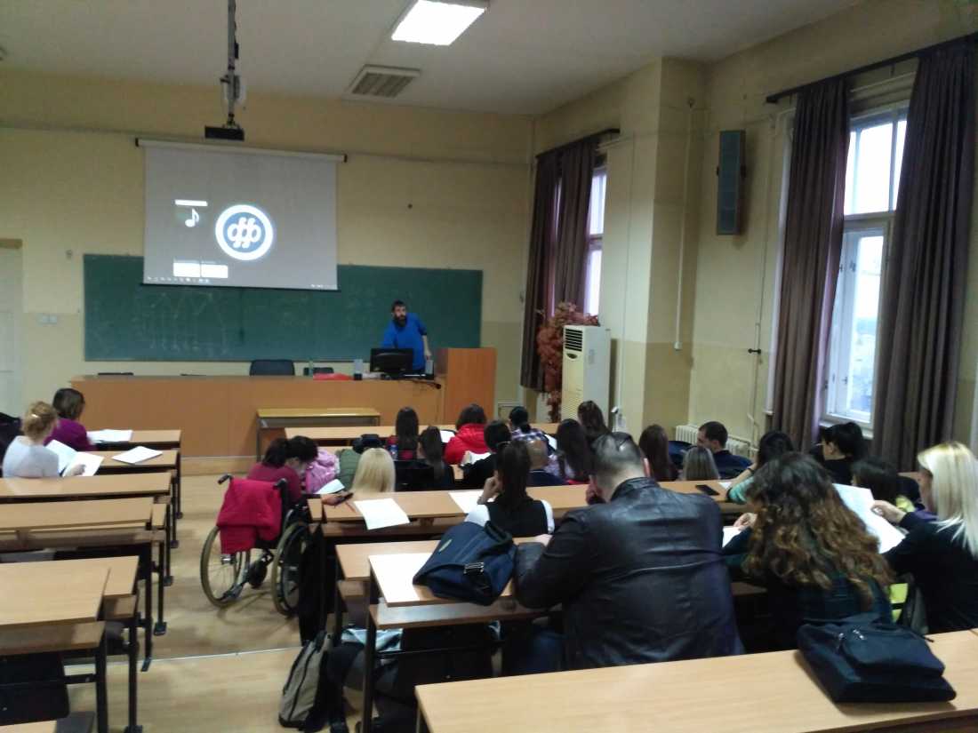 У оквиру обележавања Месеца франкофоније, гост Департмана за француски језик и књижевност био је лектор за француски језик са Филозофског факултета у Новом Саду, Флоријан Фере (Florian Ferré) који је заинтересованим студентима нашег факултета одржао занимљиво предавање о француској шансони.