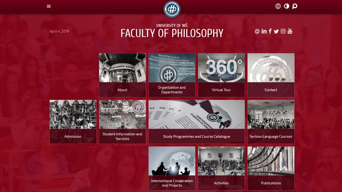 Са великим задовољством вас обавештавамо да је после вишегодишњег чекања од данас са радом почео портал Филозофског факултета на енглеском језику. Надамо се да ће ово довести до бољег повезивања наше институције са високошколским установама, научним институтима, студентима и колегама из иностранства, да ће олакшати процес одлазних и долазних размена студената и наставног особља, као и да ће повећати видљивост наших активности, наставних програма и научног рада.