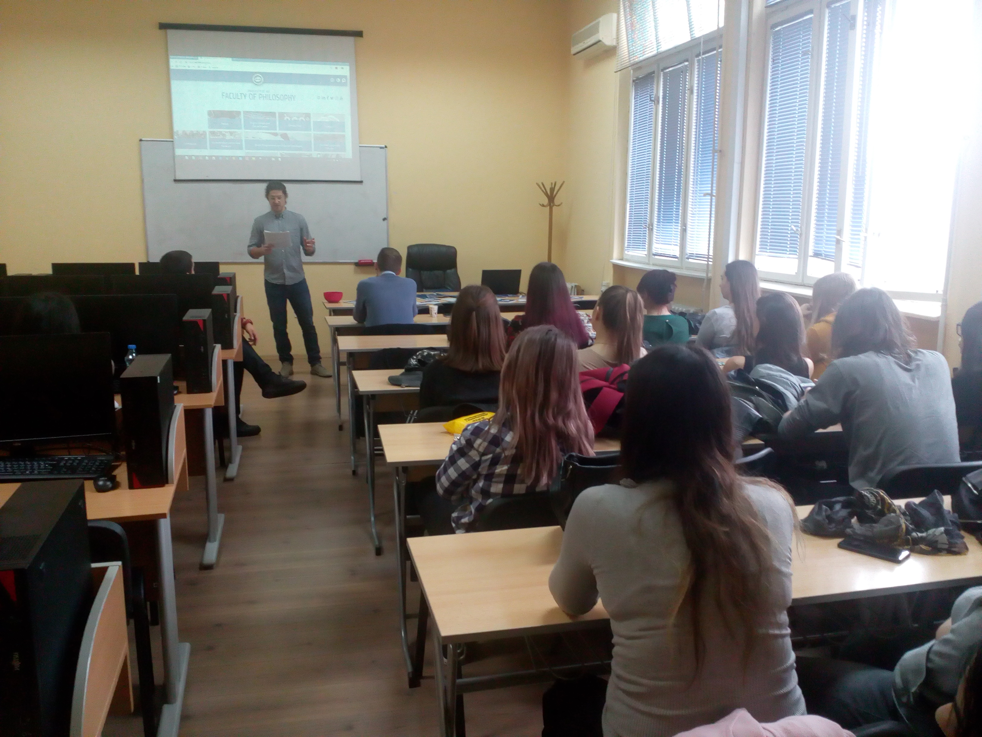 11. априла, проф. др Михаило Антовић одржао је научно-популарно предавање под називом Од школске граматике до истраживања мозга: Лингвистика као пут да се објасни људска природа. Предавање је одржано у гимназији Светозар Марковић, а присуствовали су ученици трећег разреда. Током предавања, уз презентацију и велики број аутентичних примера, ученици су могли да се упознају са основама когнитивно-лингвистичких проучавања језика и когнитивних процеса на којима је заснована језичка компетенција. Само тема предавања побудила је велико интересовање, тако да су се ученици већ у току предавања у више наврата укључивали у дискусију. На крају је уследила и презентација студијског програма ОАС англистике, а ученици су могли да чују и основне информације о пријемном испиту, условима уписа и могућностима за даљи рад и усавршавање које овај студијски програм нуди.
