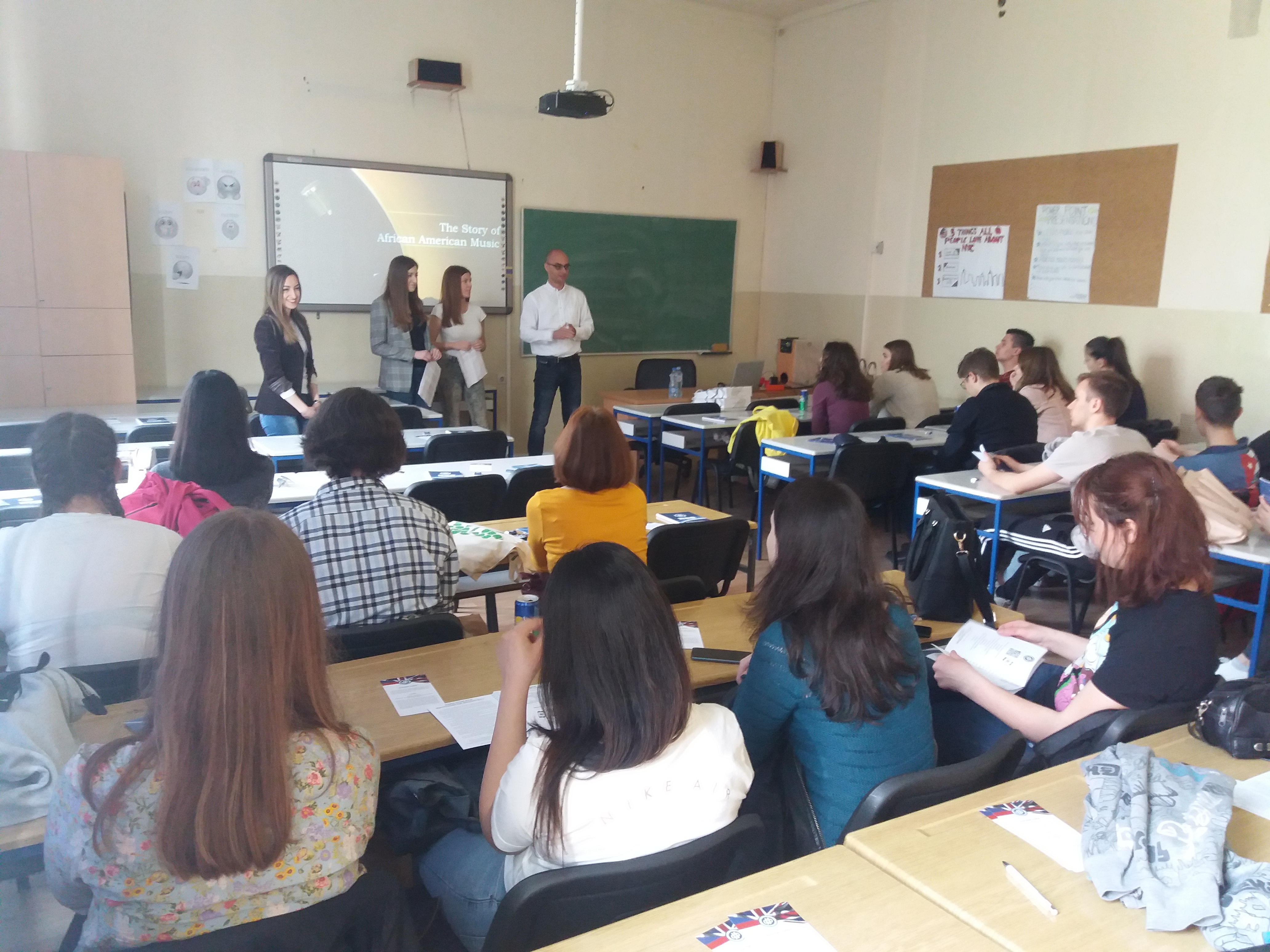 10. априла одржана је радионица под називом African-American Music, коју су одржале Тина Стојановић и Марија Ђорђевић, студенткиње треће године ОАС англистике, под менторством доц. др Ане Коцић. Радионици су присуствовали ученици трећег разреда гимназије Светозар Марковић из Ниша, и током саме презентације имали су прилику да се укључе у дискусију, поставе питања и поделе своје ставове и мишљења са предавачима. Након радионице је уследила и додатна дискусија, а ученици су такође упознати са структуром студијског програма и условима уписа.
