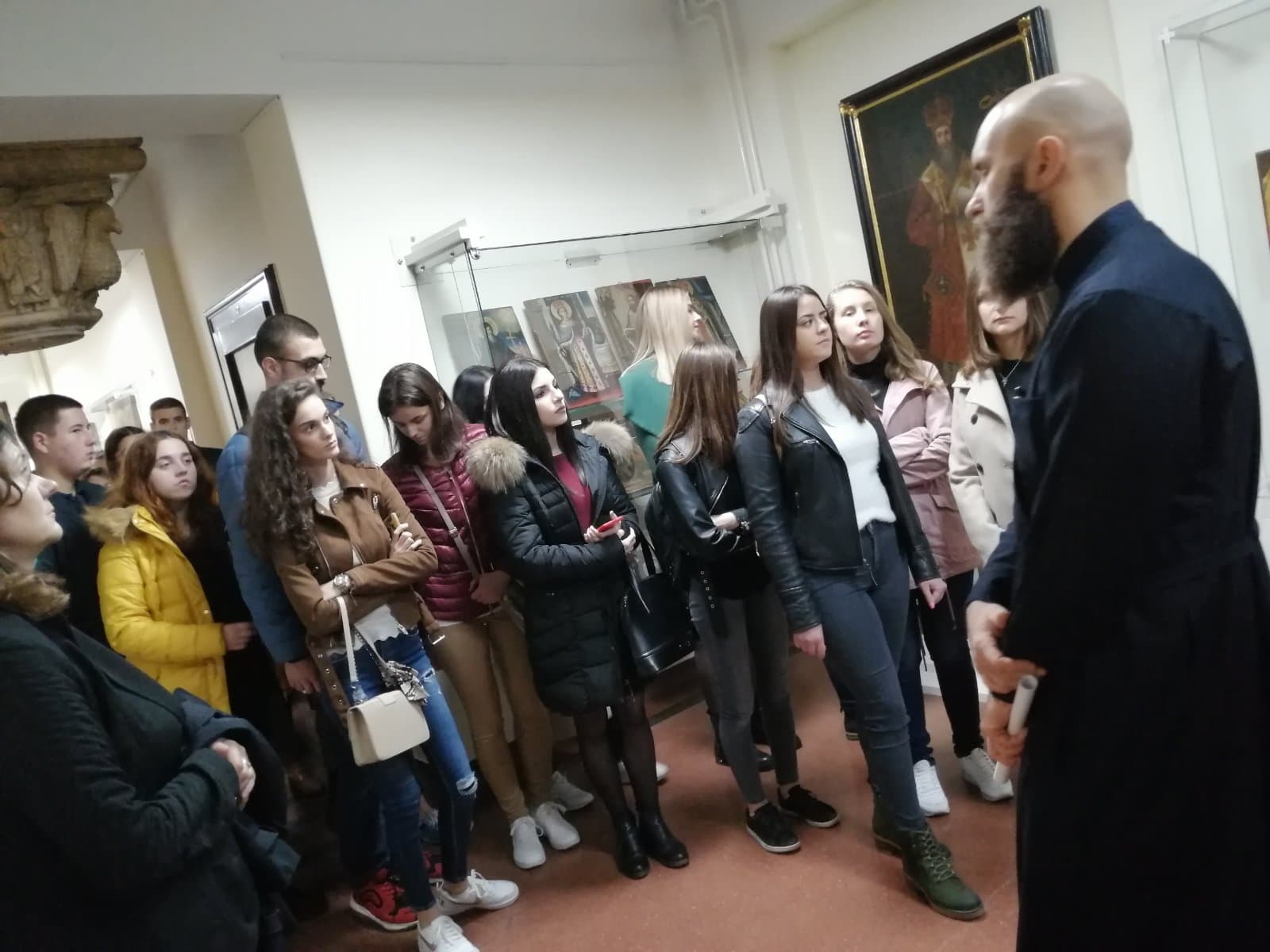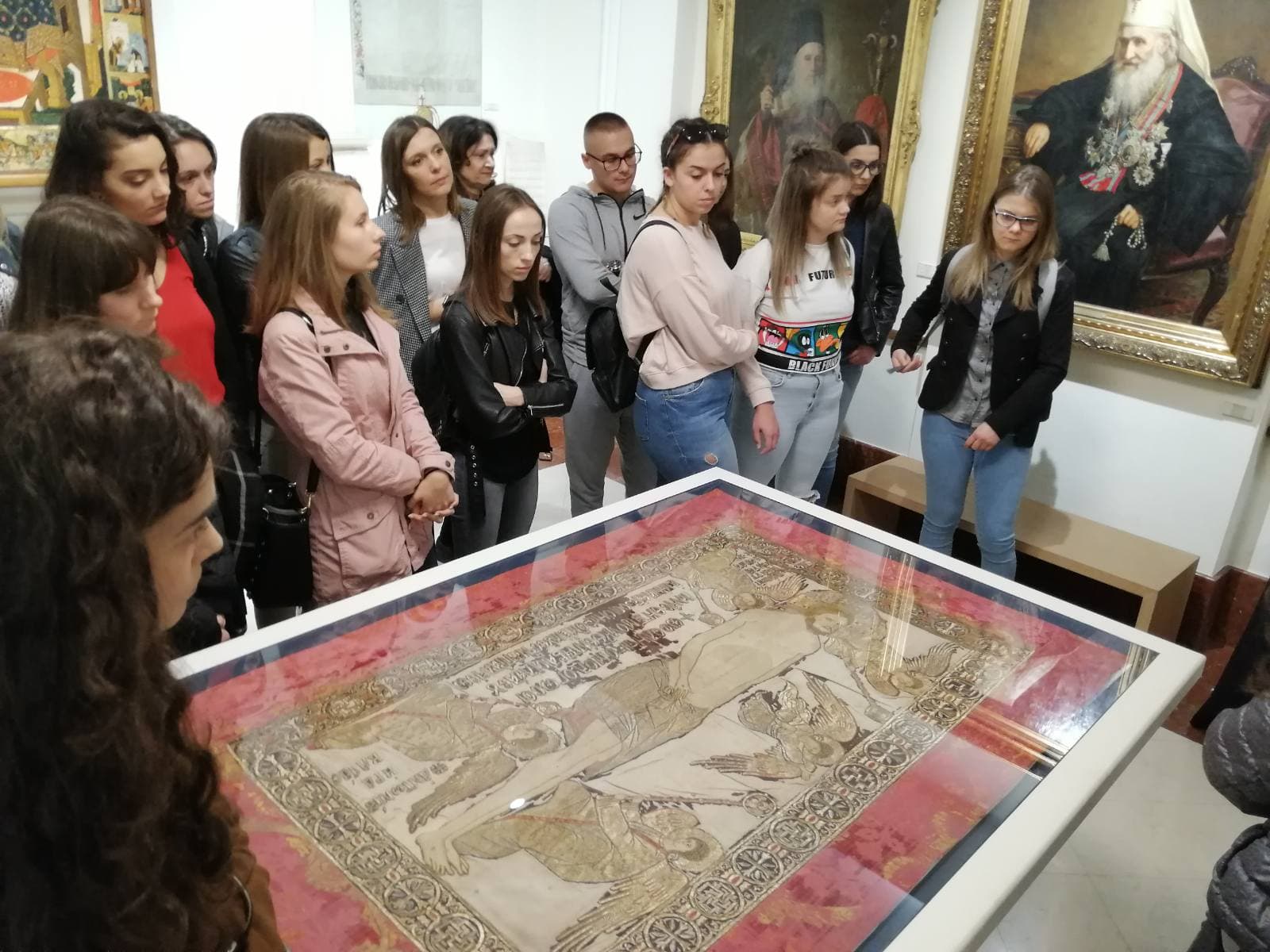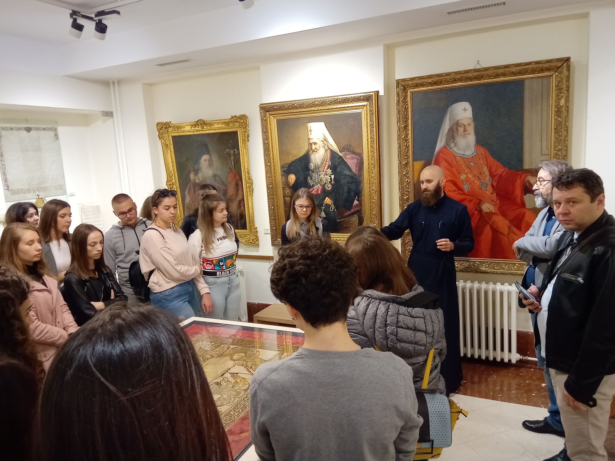 У огранизацији Филозофског факултета у Нишу и Департмана за српску и компаративну књижевност, а у оквиру наставе из предмета Стара српска књижевност, Рецепција библијске и светоотачке књижевности и Љубав у старој српској књижевности, проф. др Драгише Бојовића, студенти прве и друге године Србистике посетили су изложбу „Осам векова уметности под окриљем Српске Православне Цркве 1219–2019”. Радознале посетиоце дочекао је ђакон Александар Секулић и у име представника Музеја Српске Православне Цркве указао им на употребу, значај и симболику рукотворених светиња у оквиру ове поставке. Захваљујући хронолошком поретку иконописа, рукописних и штампаних књига, црквеног текстила, богослужбених сасуда, предмета од метала и др., посетиоци су стекли увид у осмовековни развој духовног и уметничког црквеног стваралаштва.