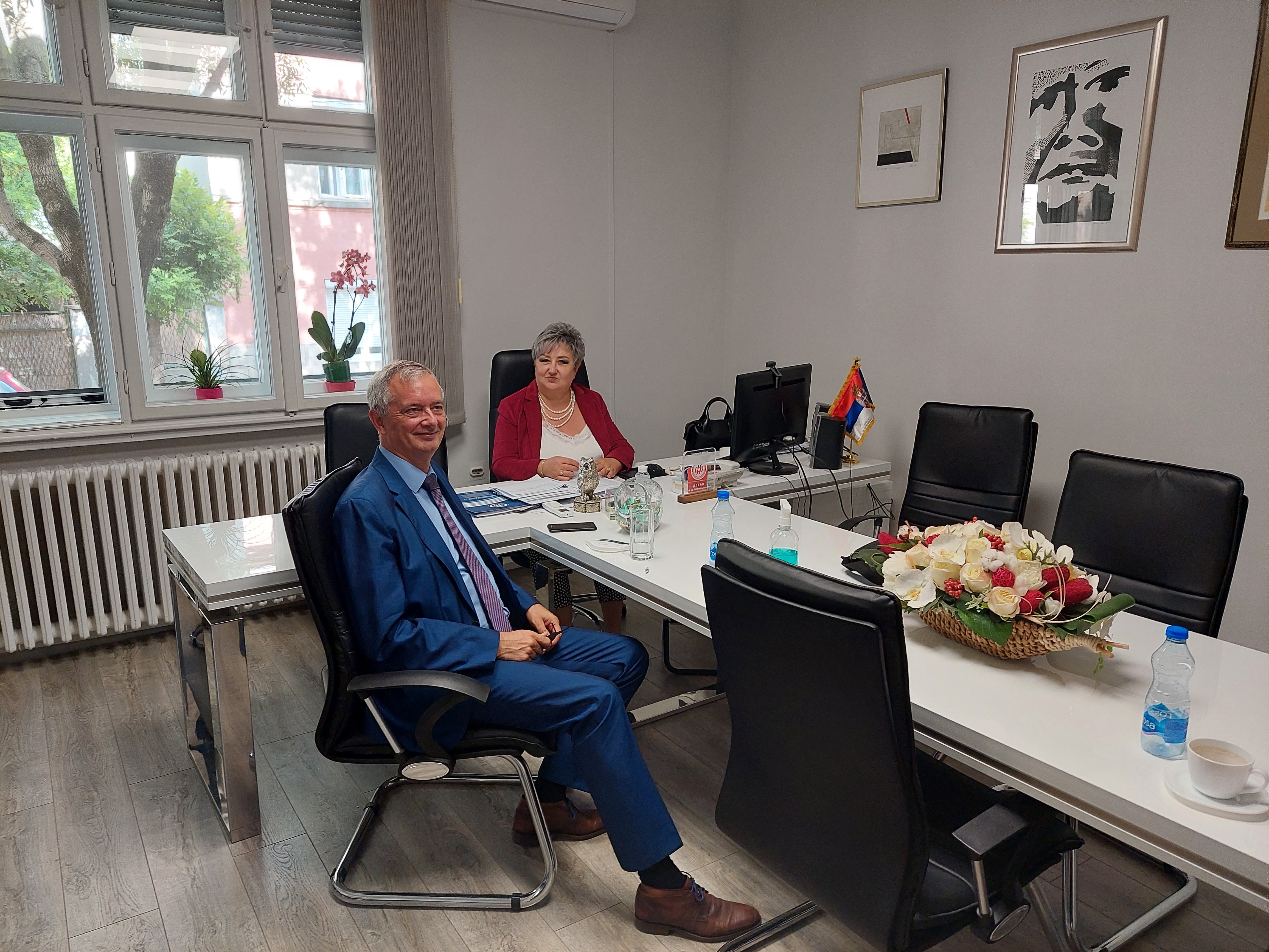 Његова Екселенција господин Кун Адам, амбасадор Краљевине Белгије у Србији, био је јуче у званичној посети Филозофском факултету у Нишу. У разговору са деканицом Факултета, проф. др Наталијом Јовановић, и управником Департмана за француски језик и књижевност и председником Удружења професора француског језика Србије проф. др Иваном Јовановићем, истакао је важност учења француског језика у Србији и спремност амбасаде да подржи све промотивне активности усмерене ка промоцији и побољшању статуса овог романског језика у образовном систему Србије. Његова Екселенција поздравила је иницијативу Факултета да се са промоцијом француског крене на раном узрасту, на предшколском нивоу. Када је реч о академској сарадњи, амбасада Белгије ће доделити по једну студентску и наставничку стипендију за боравак у овој земљи у оквиру програма стручног усавршавања и обављања стручне праксе у области француског као страног језика. Неколико стипендија биће додељено и наставницима француског језика из средњих и основних школа у Србији. Канцеларија Wallonie-Bruxelles, у оквиру Амбасаде, чији је циљ промоција франкофоних вредности у Србији, финансијски ће помоћи и подржати организацију Зимског и Летњег универзитета у Београду и Нишу за наставнике француског језика који ће имати прилику да похађају радионице и предавања иностраних стручњака из области дидактике француског као страног језика.