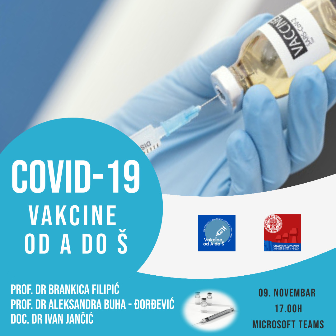 Студентски парламент Универзитета у Нишу у сарадњи са тимом професора са Фармацеутског факултета Универзитета у Београду организује онлајн предавање под називом “Ковид 19 - вакцине  од А до Ш”. На предавању ће говорити: