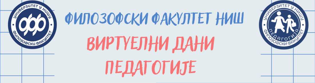 Департман за педагогију Филозофског факултета у Нишу позива све заинтересоване ученике, наставнике, стручне сараднике и студенте да учествују у активностима у оквиру обележавања ВИРТУЕЛНИХ ДАНА ПЕДАГОГИЈЕ.
