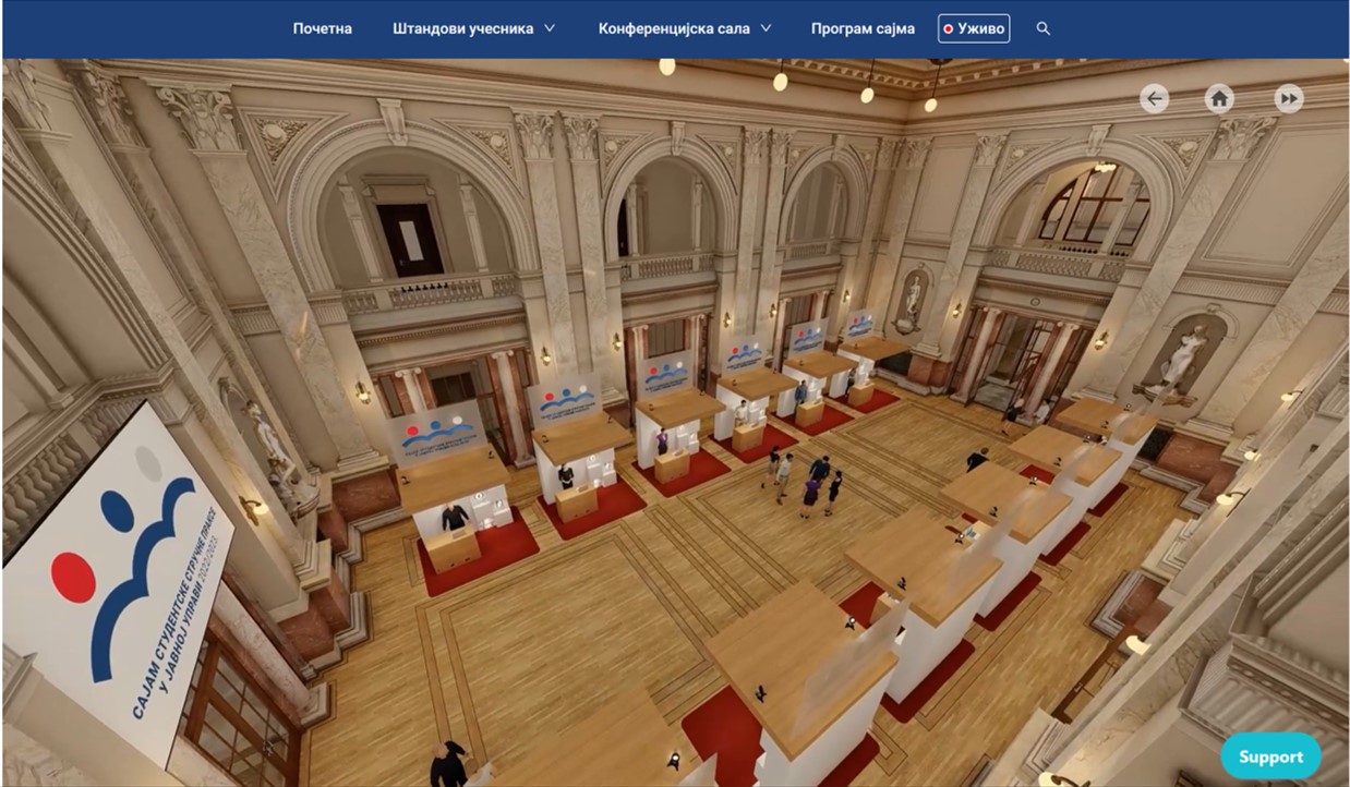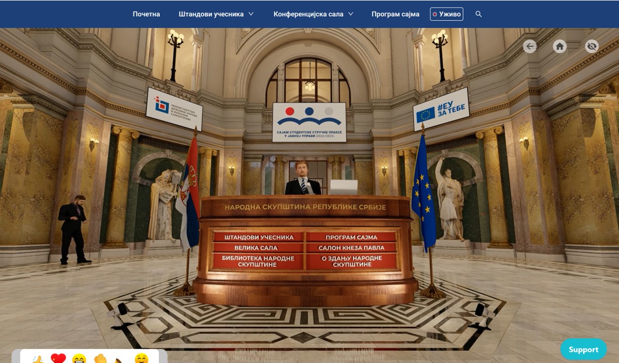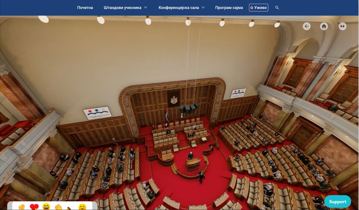 Сајам почиње у 10 часова и креиран је као једнодневни онлајн догађај на посебној платформи која посетиоце води кроз виртуелно здање Народне скупштине Републике Србије.