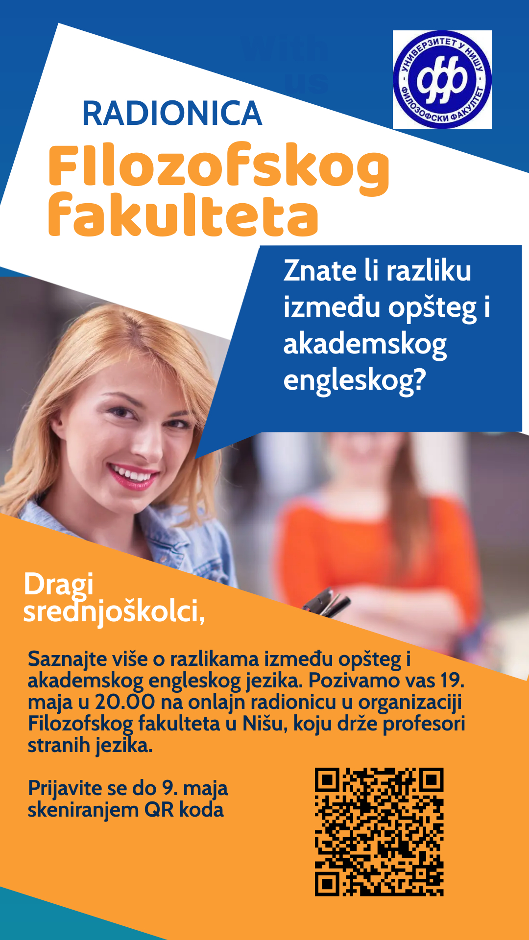 Погледајте радионице и пријавите се кликом на линк: https://forms.gle/3KBxHRKa2sSdqV3u6 или скенирањем QR кода на постеру у прилогу.