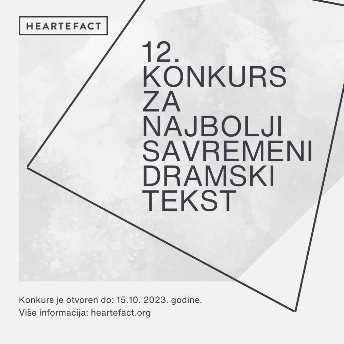 Хартефакт расписује дванаести по реду “Конкурс за најбољи савремени ангажовани целовечерњи драмски текст” на српском, хрватском, босанском, словенчком, македонском или црногорском језику.