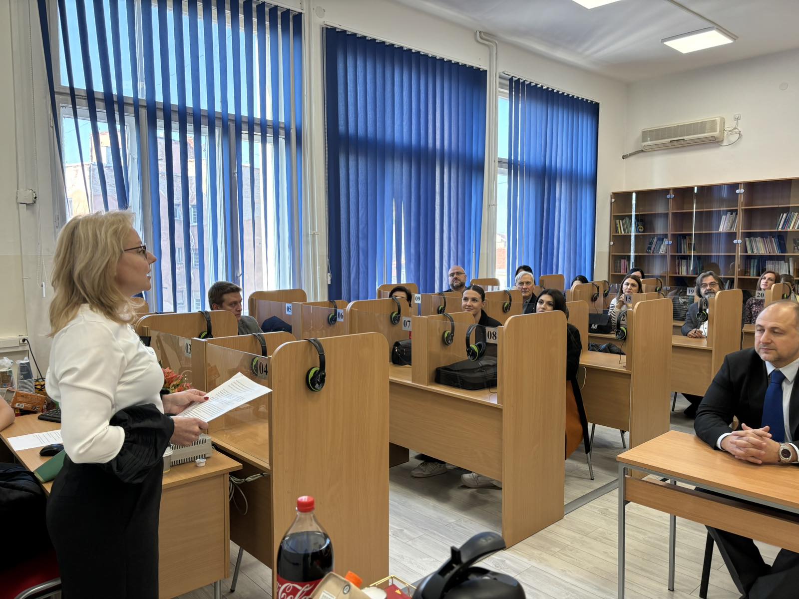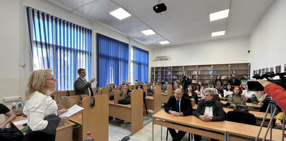Деканица нишког Филозофског факултета Наталија Јовановић истакла је да је фонетска учионица једна од најмодернијих учионица за изучавање језика и симултано превођење.