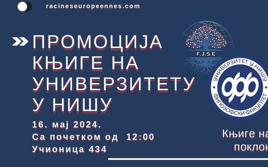 Промоција књиге ће се одржати 16. маја на Филозофском факултету у Нишу, у сали број 434, са почетком у 12 часова.