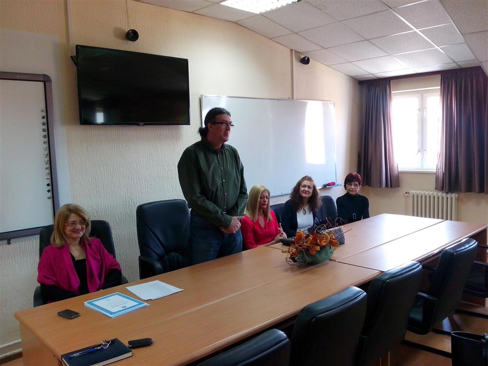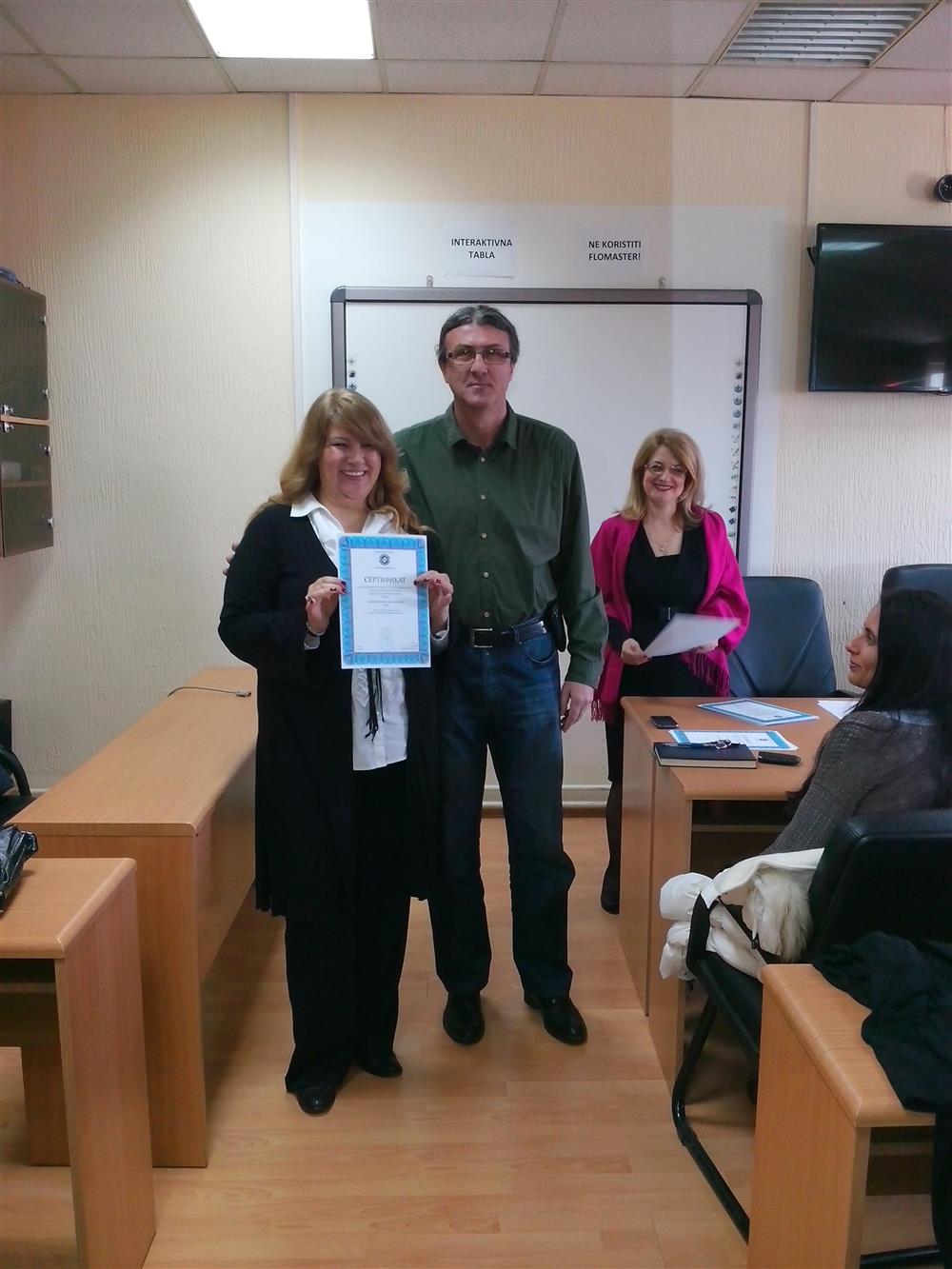 У суботу (4. априла), декан Филозофског факултета, проф. др Горан Максимовић, заједно са колегиницама из Центра за образовање наставника (проф. др Марина Јањић, доц. др Јелена Максимовић и доц. др Гордана Ђигић), доделио је сертификате за успешно завршен семинар за менторску обуку наставника, који је реализован на Филозофском факултету у Нишу у току зимског семестра школске 2014-15. године.