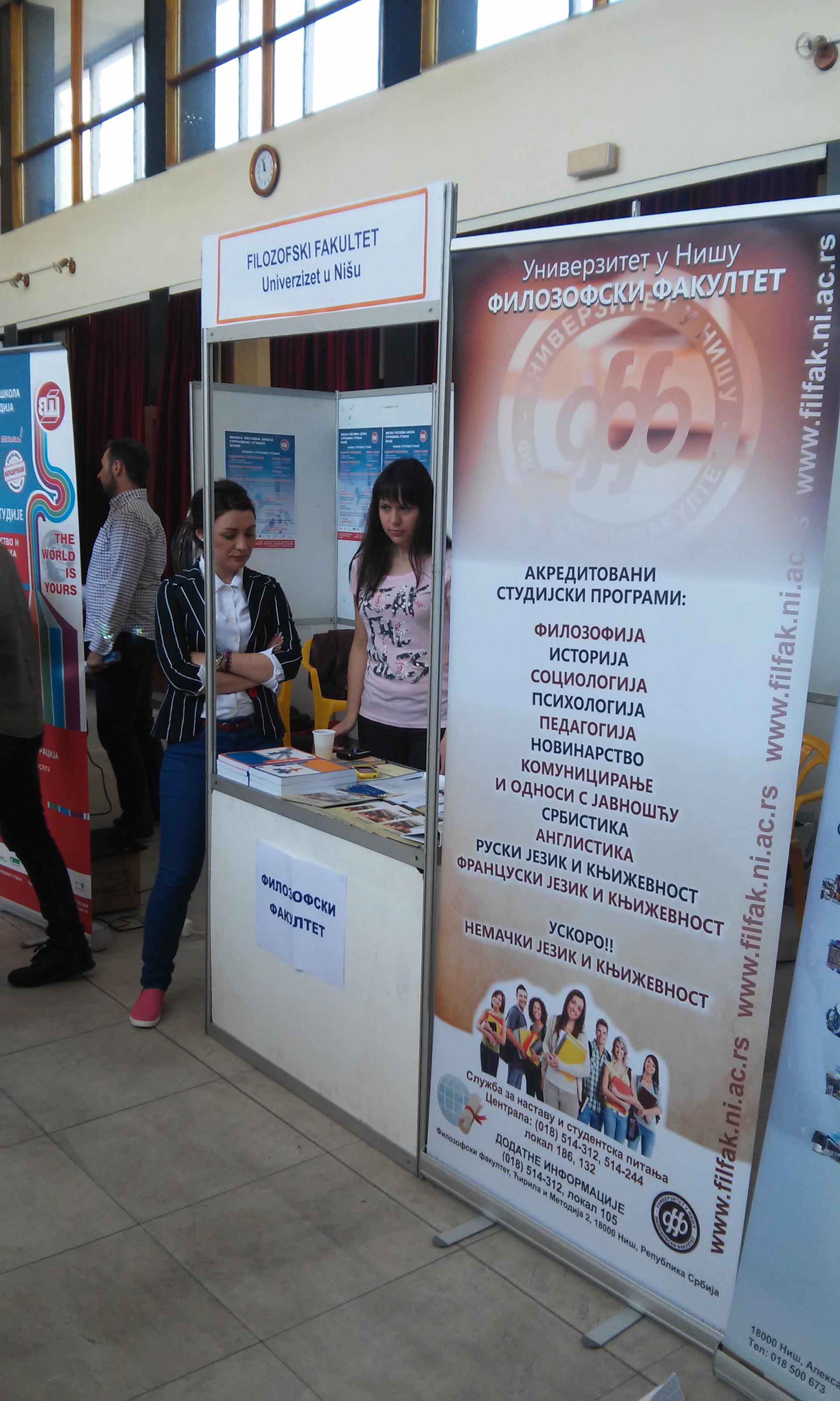 У Дому војске се 17. и 18. априла одржава Сајам образовања и професионалне оријентације на коме учествује и Филозофски факултет. Сви заинтересовани за студирање на Филозофском факултету могу се овим путем информисати о студијским програмима, уписним квотама, школарини, предстојећем пријемном испиту.