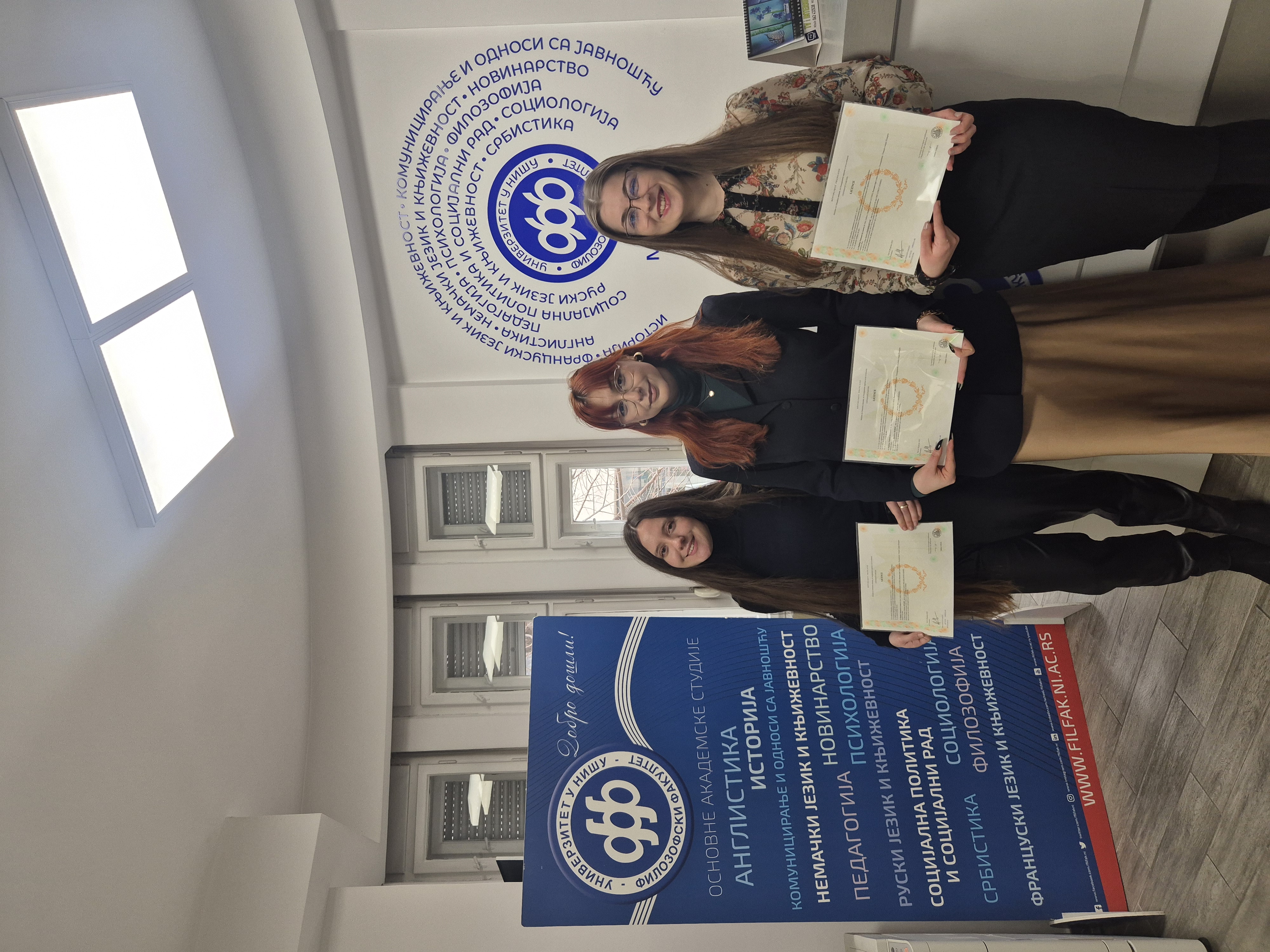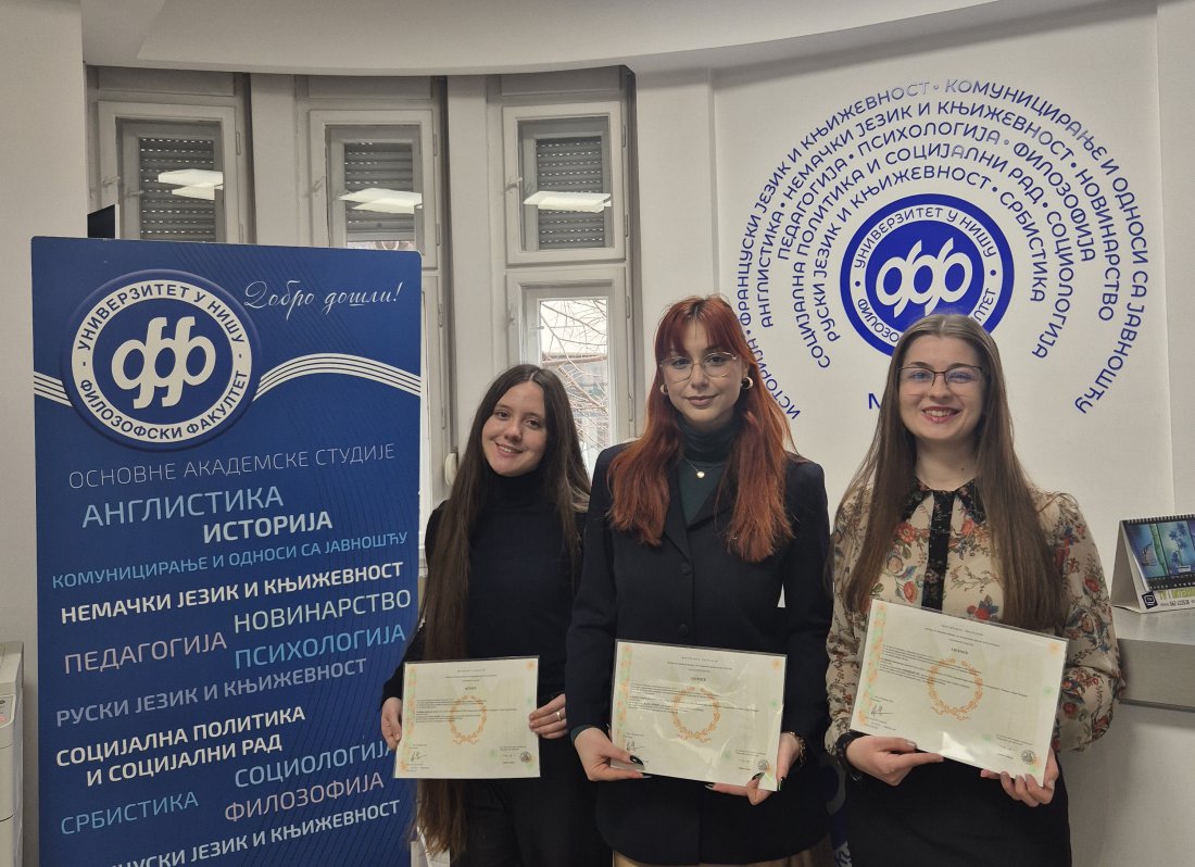 Филозофски факултет Универзитета у Нишу је са великим задовољством дана 4. фебруара 2026. године доделио дипломе студенткињама Департмана за француски језик и књижевност које су један део својих студија провеле на Универзитету Артоа у Арасу у Француској (Université d’Artois, Arras, France). Студенткиње Дана Ђорђевић, Јелена Ђорић и Тијана Спасић прве су добитнице ове двоструке дипломе на основним академским студијама, а то значи да сада поседују диплому и Факултета Артоа и Филозофског факултета. Ова студентска мобилност део је пројекта двоструке дипломе оформљеног између Универзитета у Нишу и Универзитета Артоа у оквиру програма Еразмус+.
