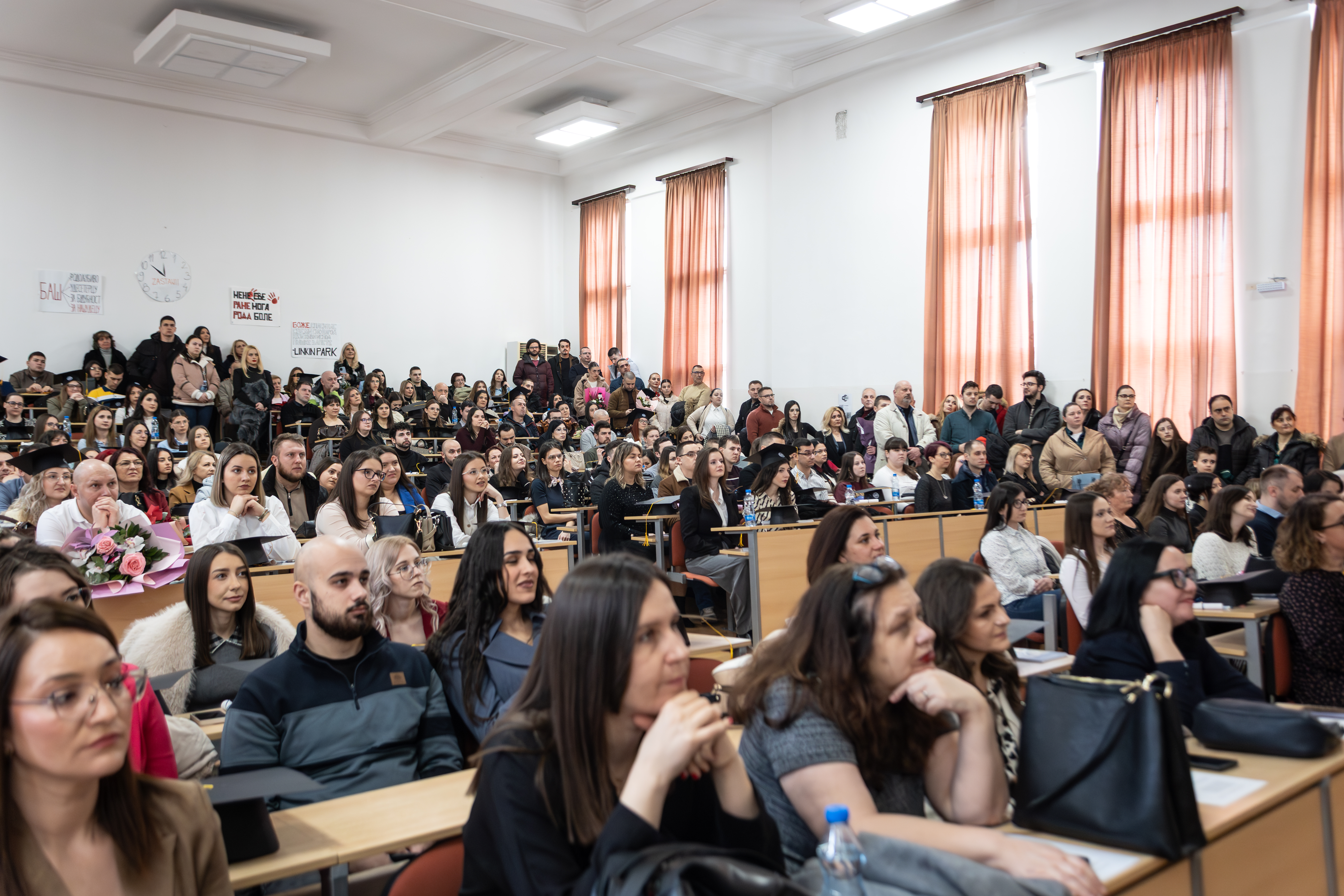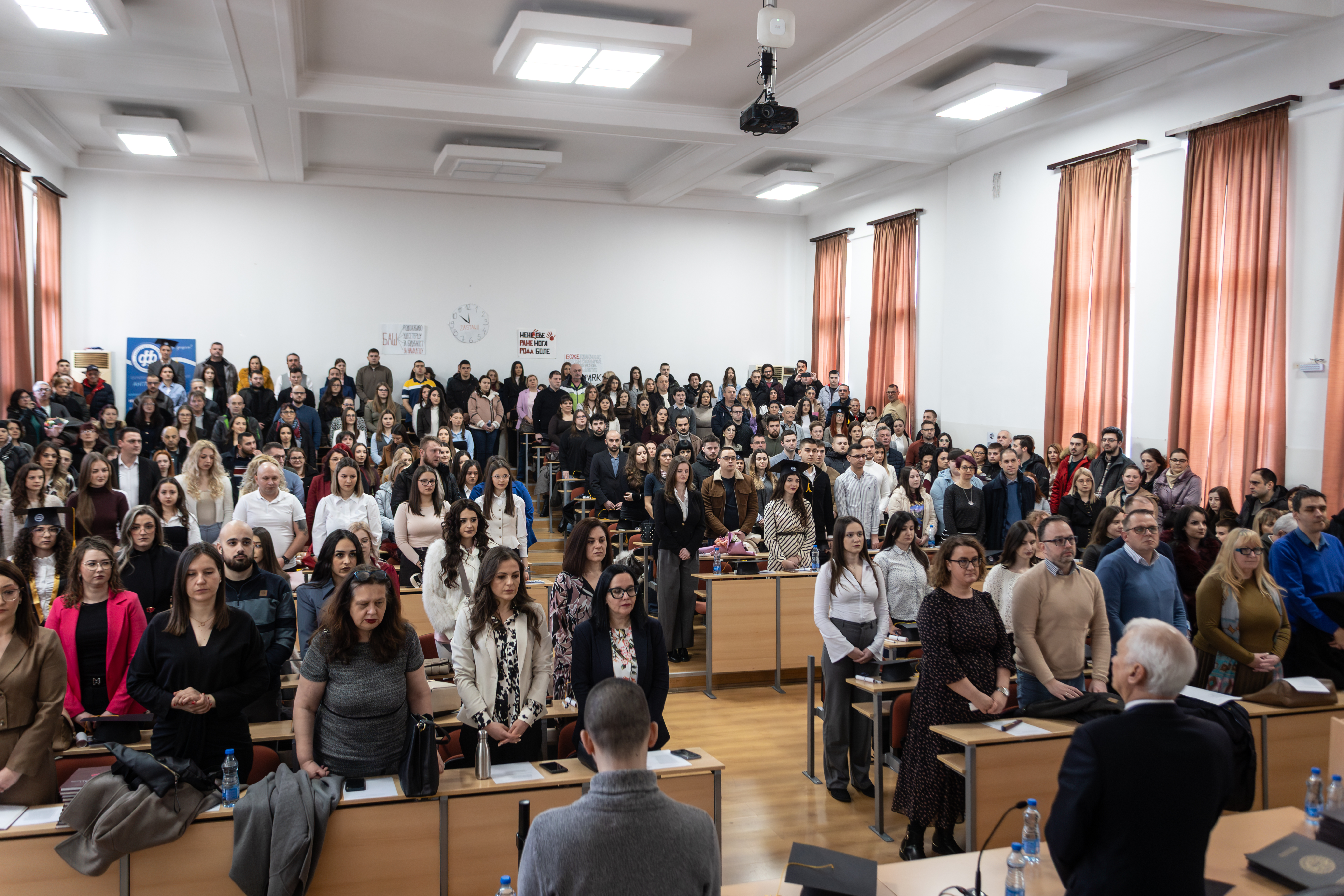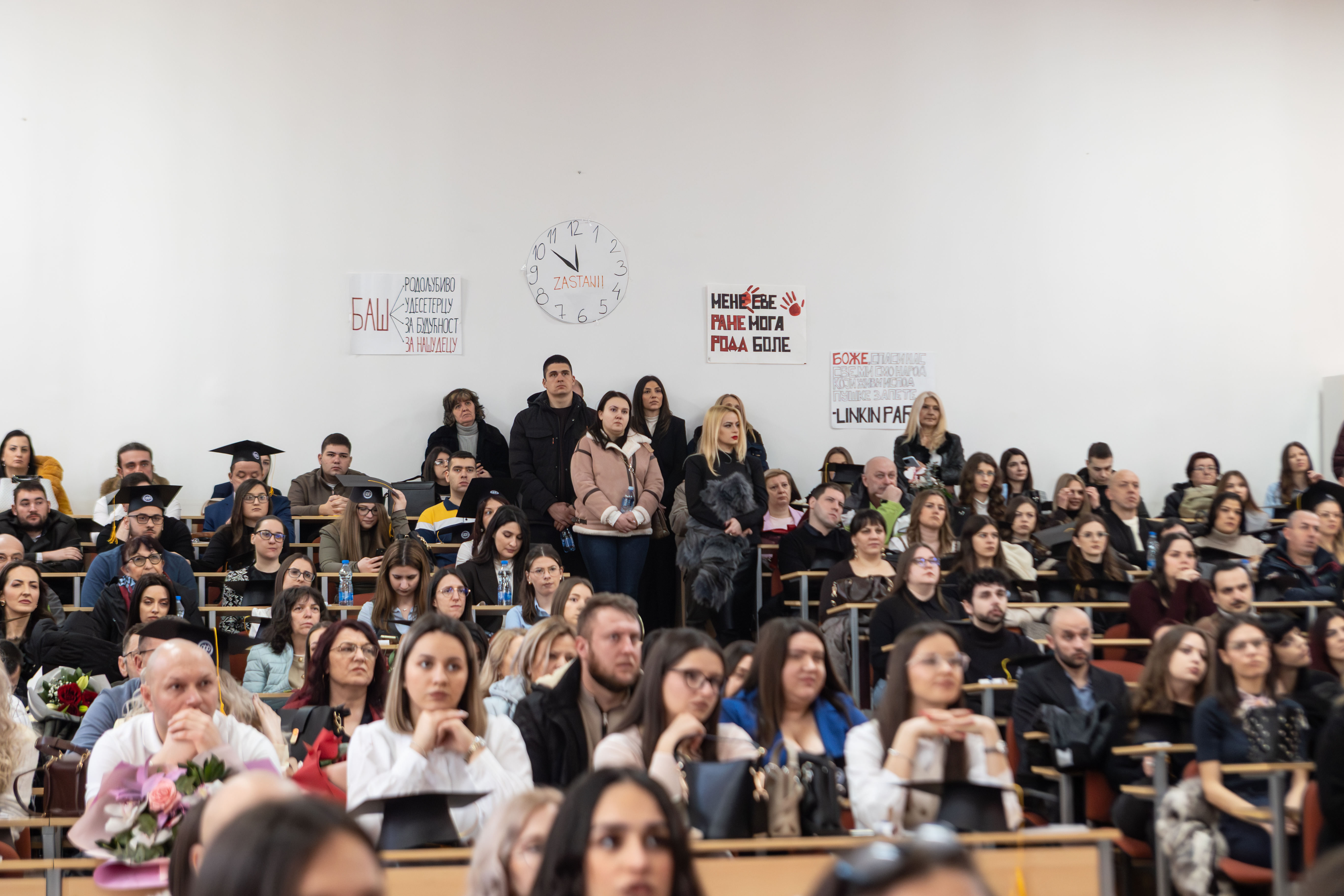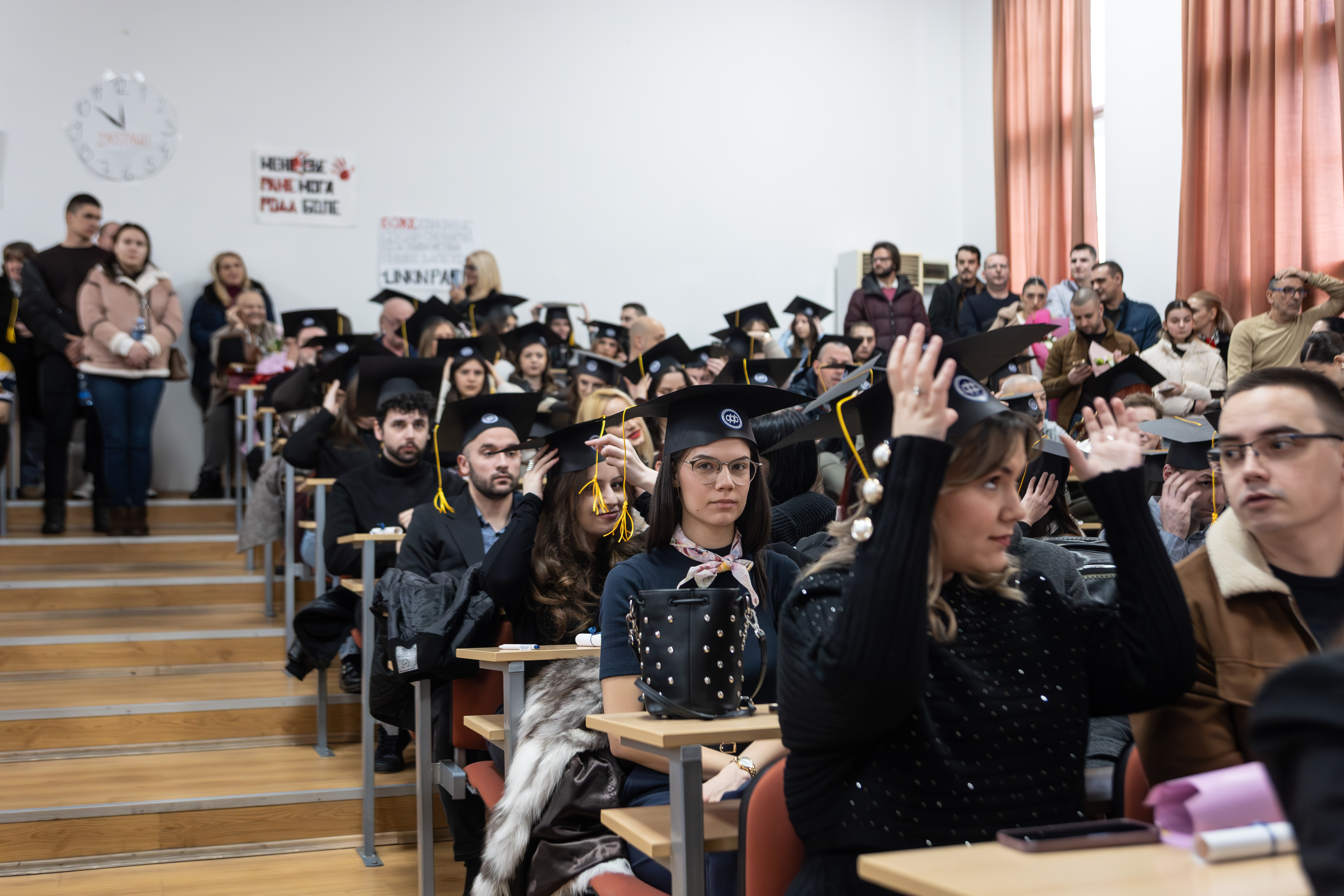 Церемонија је отворена универзитетском химном Gaudeamus igitur, а завршена традиционалним бацањем академских капа, чиме је симболично обележен завршетак једног важног животног и образовног поглавља.