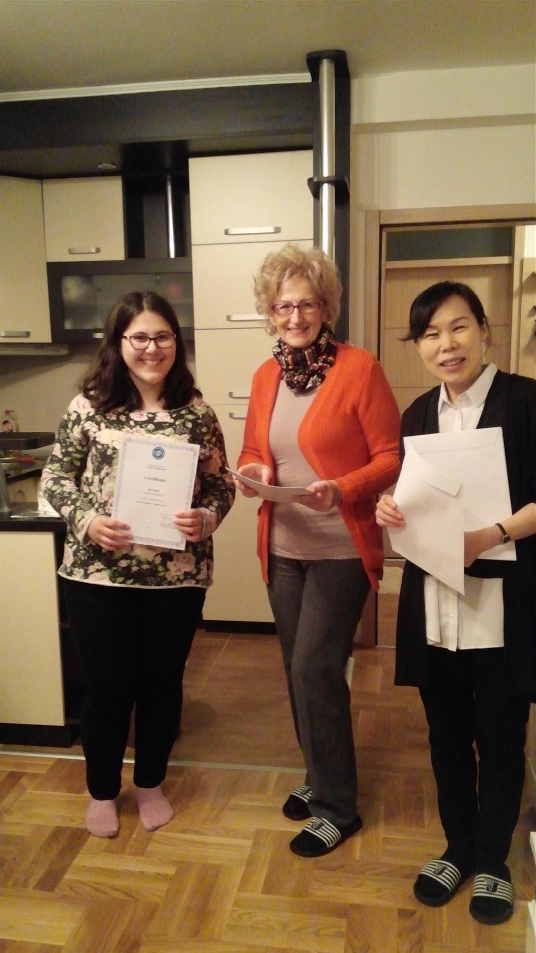 Поводом завршетка првог курса из корејског језика (почетни ниво) и доделе сертификата студентима који су положили испит организован у оквиру тог курса, професорка Јангкум Ли је приредила малу свечаност у свом новом дому у Нишу. Уз традиционалну корејску храну коју је професорица Ли припремила за своје студенте, управница Центра за стране језике, проф. др Савка Благојевић, у име Филозофског факултета у Нишу студентима је честитала на постигнутом успеху и поделила сертификате, док је најбоља полазница курса, Нина Вукић, студенткиња Електронског факултета у Нишу, од професорке Ли на поклон добила књигу са корејским драмама.