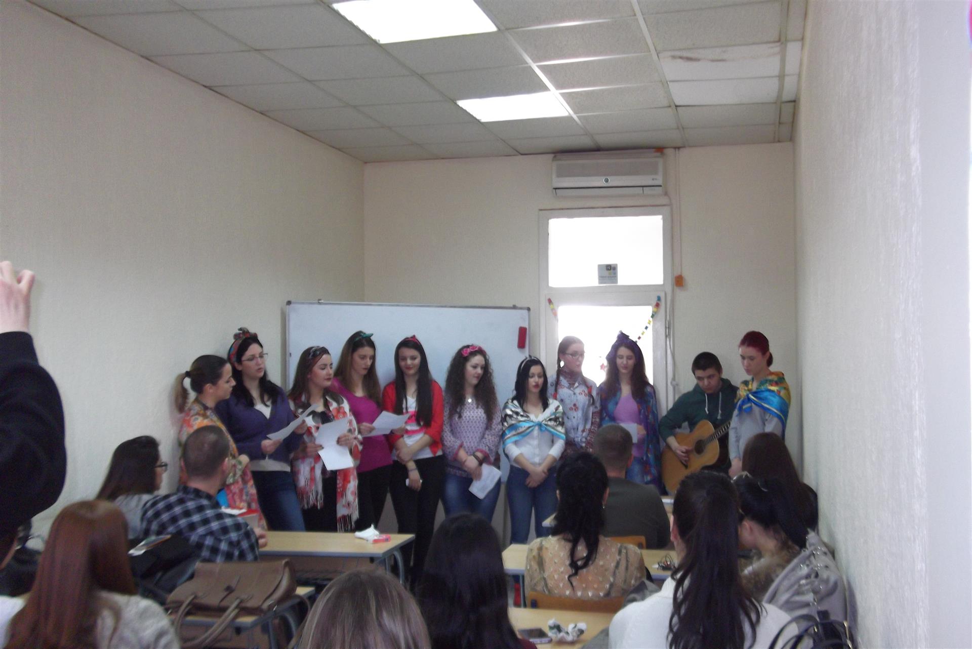 Студенти Департмана за руски језик и књижевност Филозофског факултета у Нишу обележили су у четвртак, 23. фебруара, традиционални руски празник у сусрет пролећу – Масленицу. Студенткиње I, II и III године Милијана Митић, Милица Петровић, Анђелка Оровић, Наташа Ђорђевић, Јасна Стојановић, Јелена Трајковић, Ивона Кнежевић , Катарина Тодоровић, Тијана Николић, Анита Гашовић наступиле су са празничним песмама и припремиле послужење у виду симбола наступајућих топлих сунчаних дана – палачинки, док је за музичку пратњу на гитари био задужен студент I године Младен Младеновић. Учесници и гости празничне прославе пожелели су свима ведро расположење, плодотворну и успешну годину.