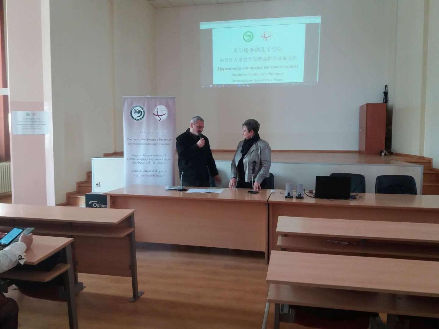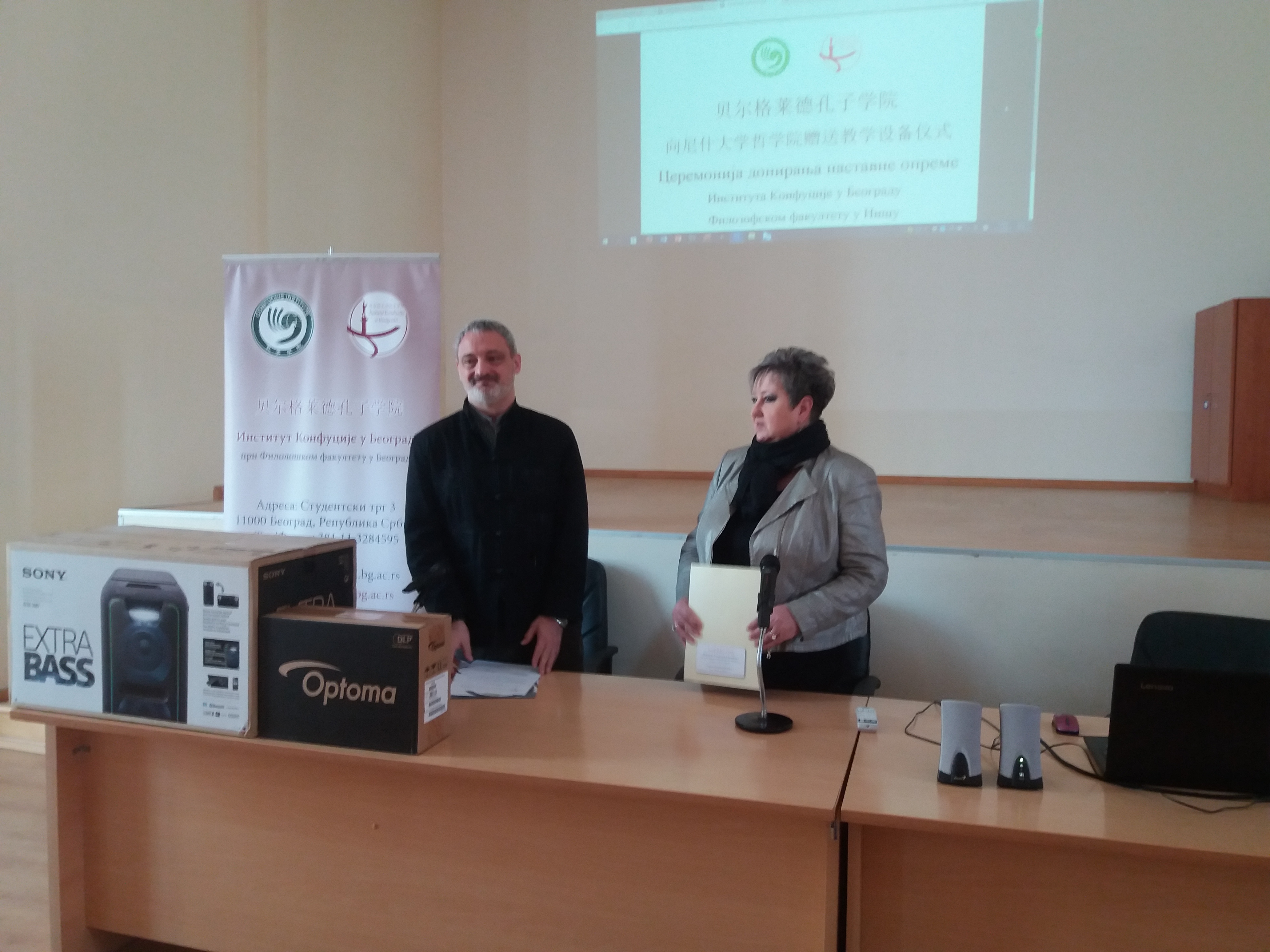 Институт за учење и промоцију кинеског језика и културе Конфуције донирао је Филозофском факултету у Нишу пројектор и мини-линију који су намењени за учење кинеског, али и других језика у овој високошколској установи.