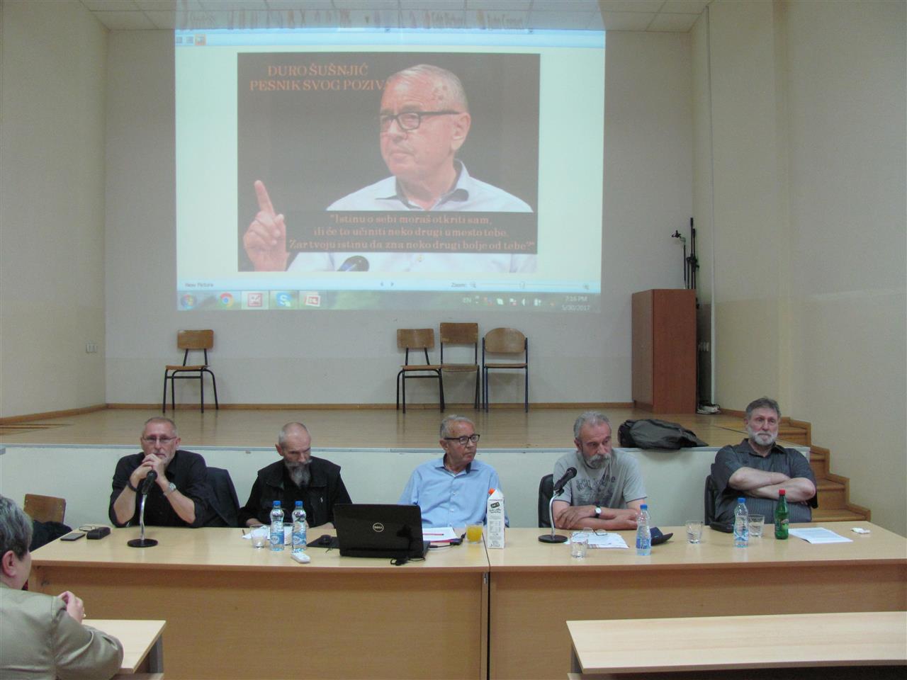 Трибина је организована на иницијативу бивших студената професора Шушњића, данас редовних професора - Зорана Јовановића, Ђокице Јовановића, Драгана Жунића и Драгољуба Ђорђевића који су се присетили студентских дана и значајног утицаја на њихове животе и каријере. Како су истакли, Шушњић им је, пре свега, био пријатељ кога нису звали "професоре", већ "Ђуро". И данас памте изузетно занимљива предавања тадашњег професора на Катедри за социологију Филозофског факултета у Нишу која су неретко трајала дуже од предвиђеног времена, као и дискусије које су се водиле по становима студената, али и самог професора. То су, истичу, лекције које остајуупамћене заувек и додају да себе сматрају великим срећницима јер су имали ту привилегију да им предаје Ђуро Шушњић.