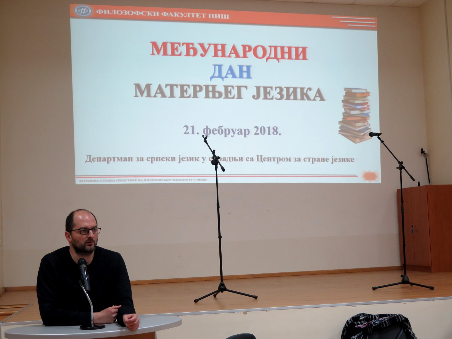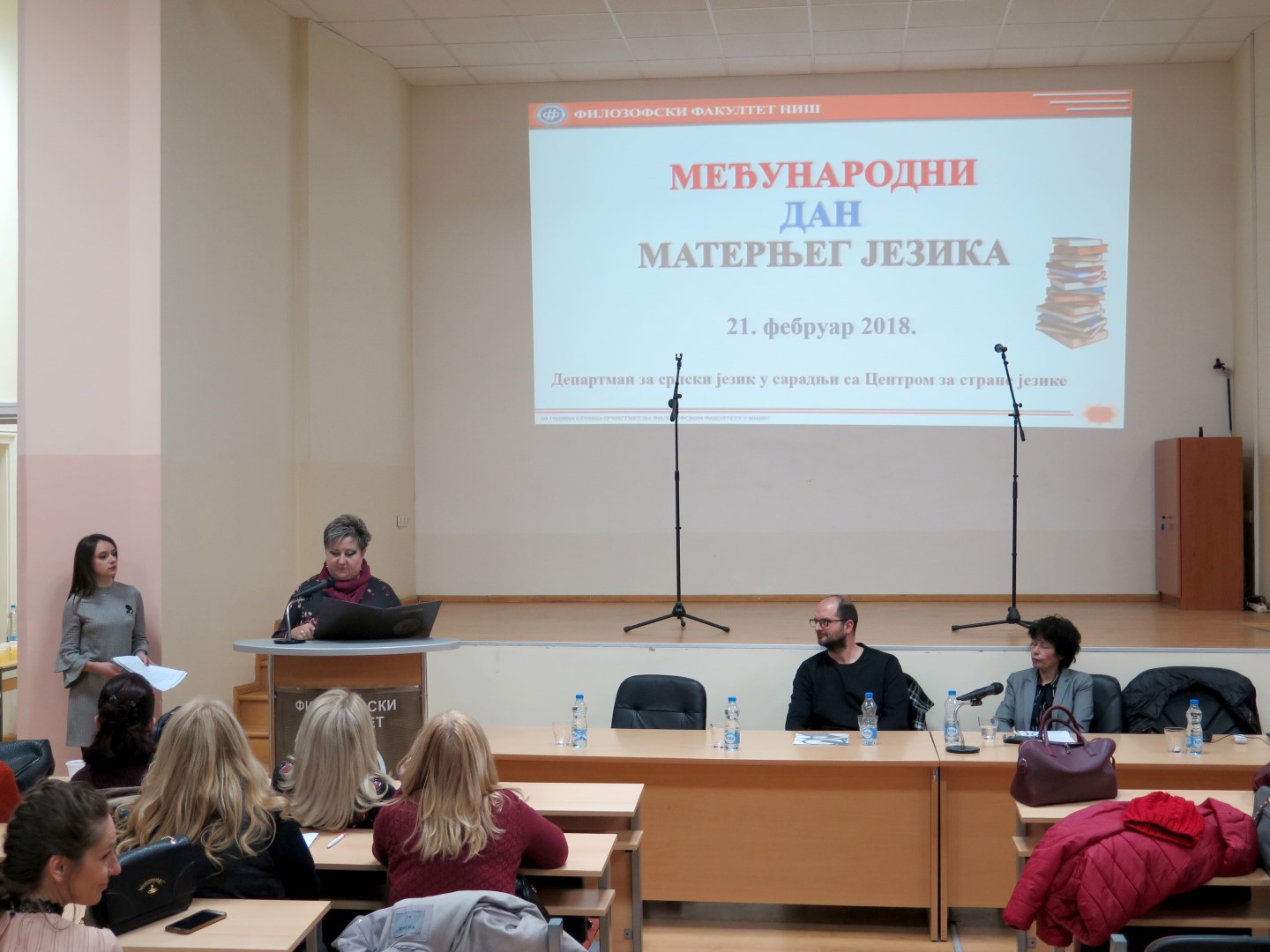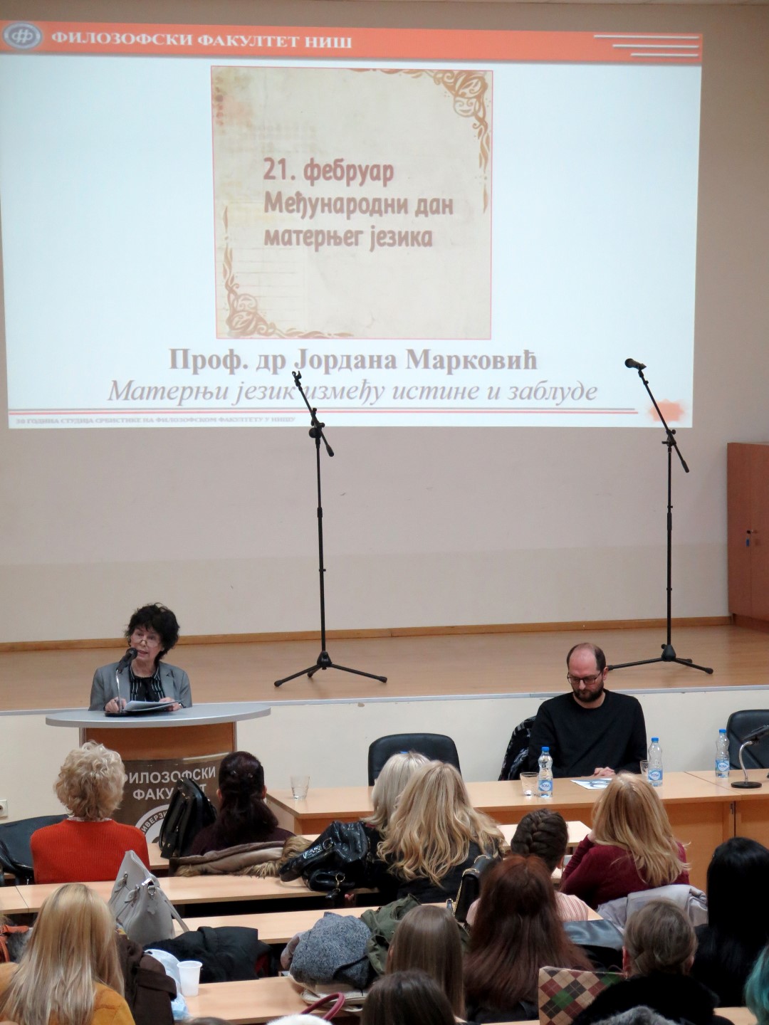 Програм је отворила деканица Филозофског факултета у Нишу проф. др Наталија Јовановић, указујући на значај свих језика који се изучавају на Филозофском факултету. Након тога, др Бранимир Станковић, доцент на Департману за српски језик, говорио је о статусу матерњег језика у свету и код нас, а проф. др Јордана Марковић, редовни професор на Департману за српски језик, одржала је предавање на тему Матерњи језик између истине и заблуде.