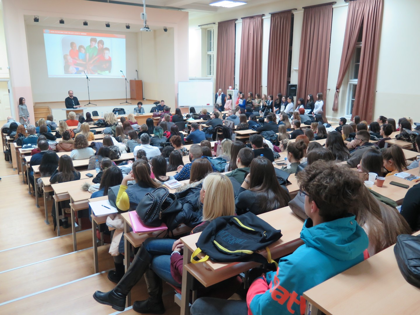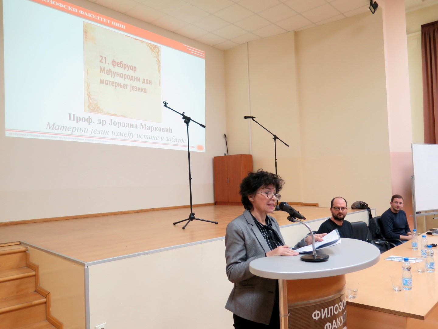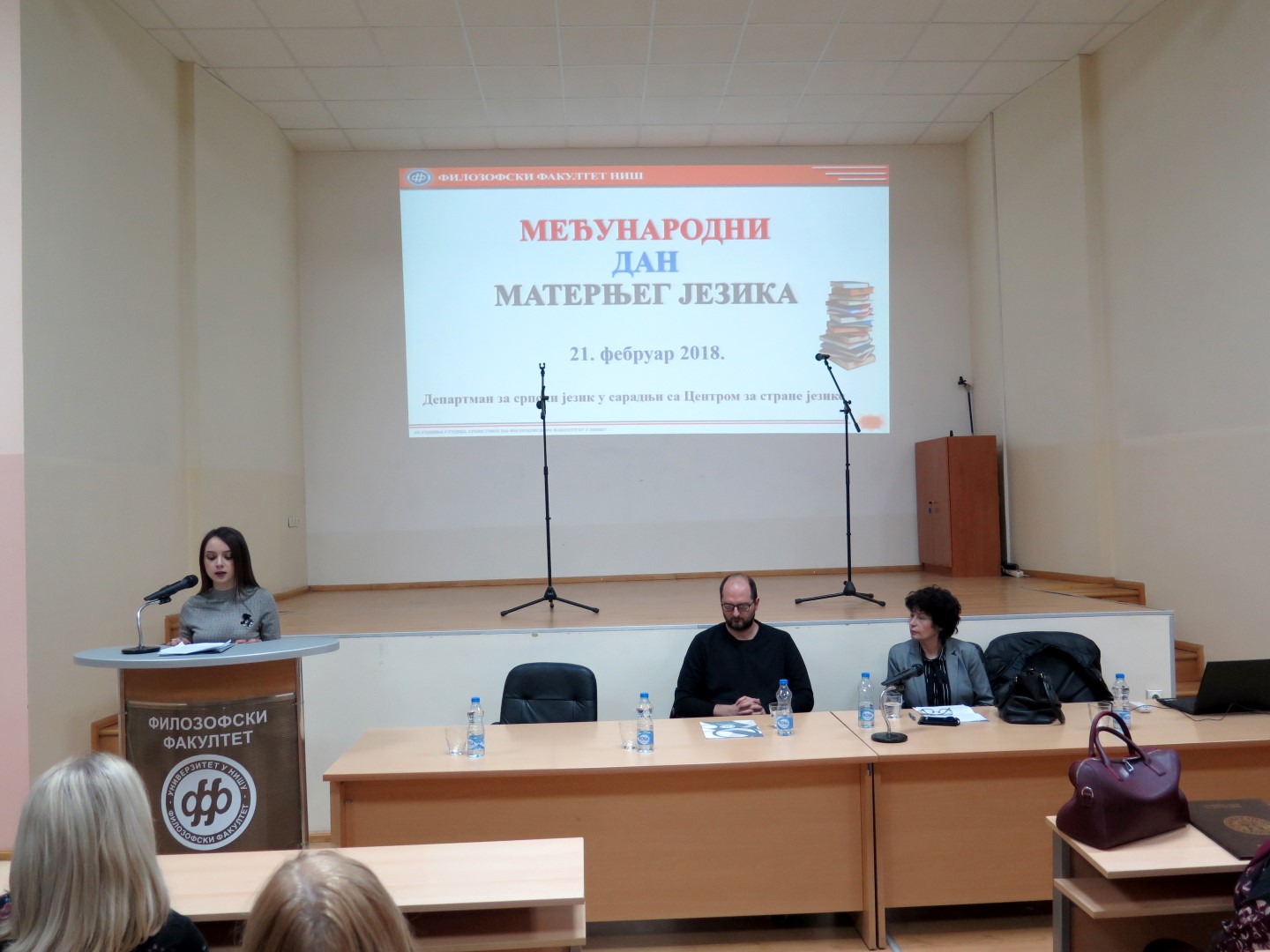 Програм је отворила деканица Филозофског факултета у Нишу проф. др Наталија Јовановић, указујући на значај свих језика који се изучавају на Филозофском факултету. Након тога, др Бранимир Станковић, доцент на Департману за српски језик, говорио је о статусу матерњег језика у свету и код нас, а проф. др Јордана Марковић, редовни професор на Департману за српски језик, одржала је предавање на тему Матерњи језик између истине и заблуде.