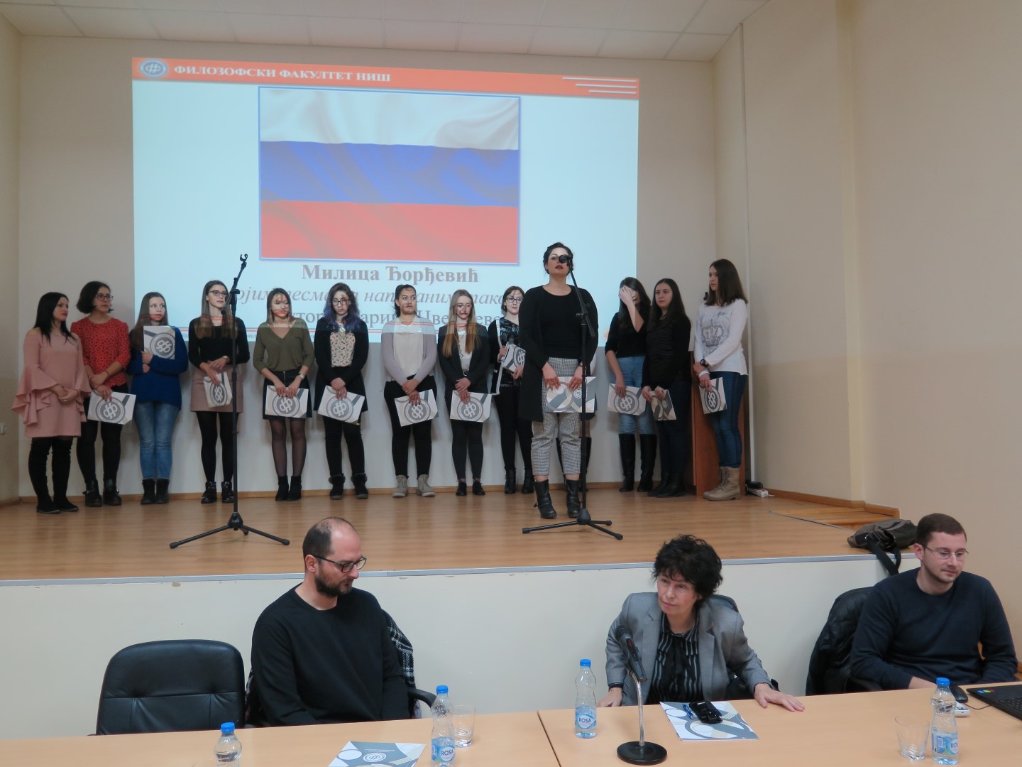 Након одржаних предавања, присутни су уживали у стиховима које су казивали студенти Филозофског факултета и ученици нишких средњих школа, на свих једанаест језика који се изучавају на Филозофском факултету: руском, бугарском, македонском, грчком, италијанском, кинеском, корејском, енглеском, француском, немачком и српском језику.