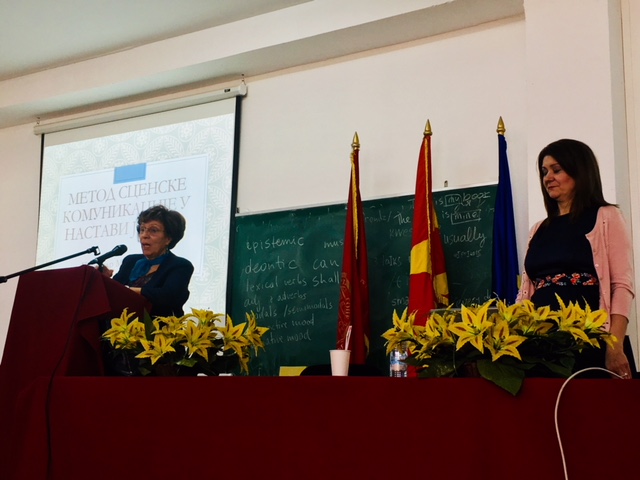 Др Марина Јањић, професор Филозофског факултета у Нишу, гостовала је на Филолошком факултету Универзитета „Гоце Делчев“ у Штипу (Македонија) где је 25. 4. 2018. одржала предавање по позиву под називом „Метод сценске комуникације у настави језика“. Предавање су пратили студенти македонистике, англистике и германистике заједно са својим предметним професорима. Предавање је изазвало велико интересовање међу присутнима јер је апсолвирало занимљиве приступе образовној лингвистици.